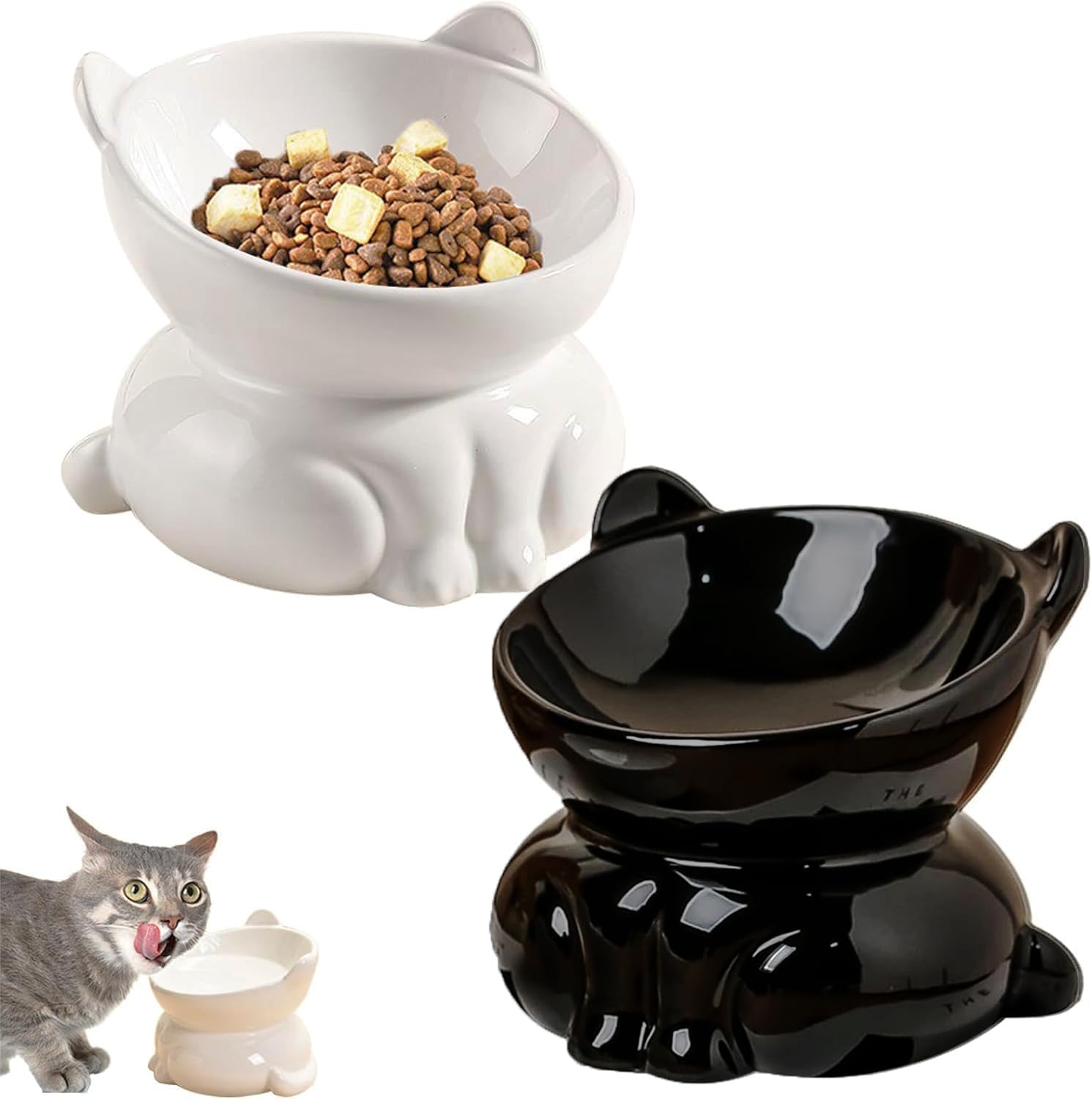 2 Pcs Elevated Cat Food Bowl, Ceramic Raised Cat Bowls, Anti Vomit Cat Food Bowl, Cat Feeding Bowl Neck Protective Bowl, 14° Tilted Raised Cat Feeder