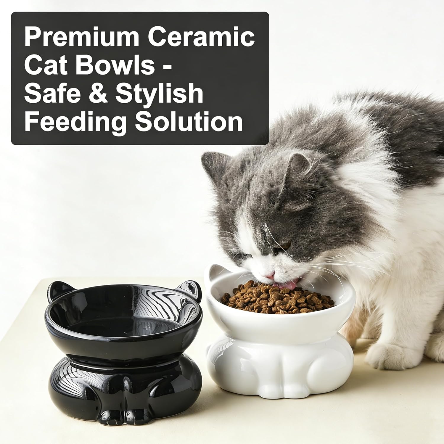 The non-slip base keeps the bowl steady, while the smooth surface ensures effortless cleaning. Prioritize your cat's well-being with our thoughtfully designed, durable, and safe feeding solution.