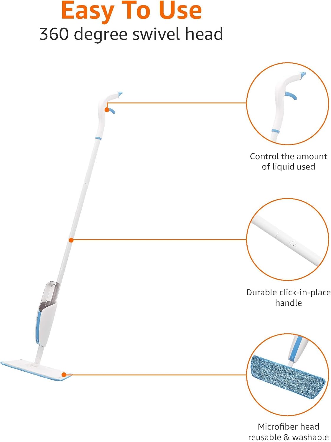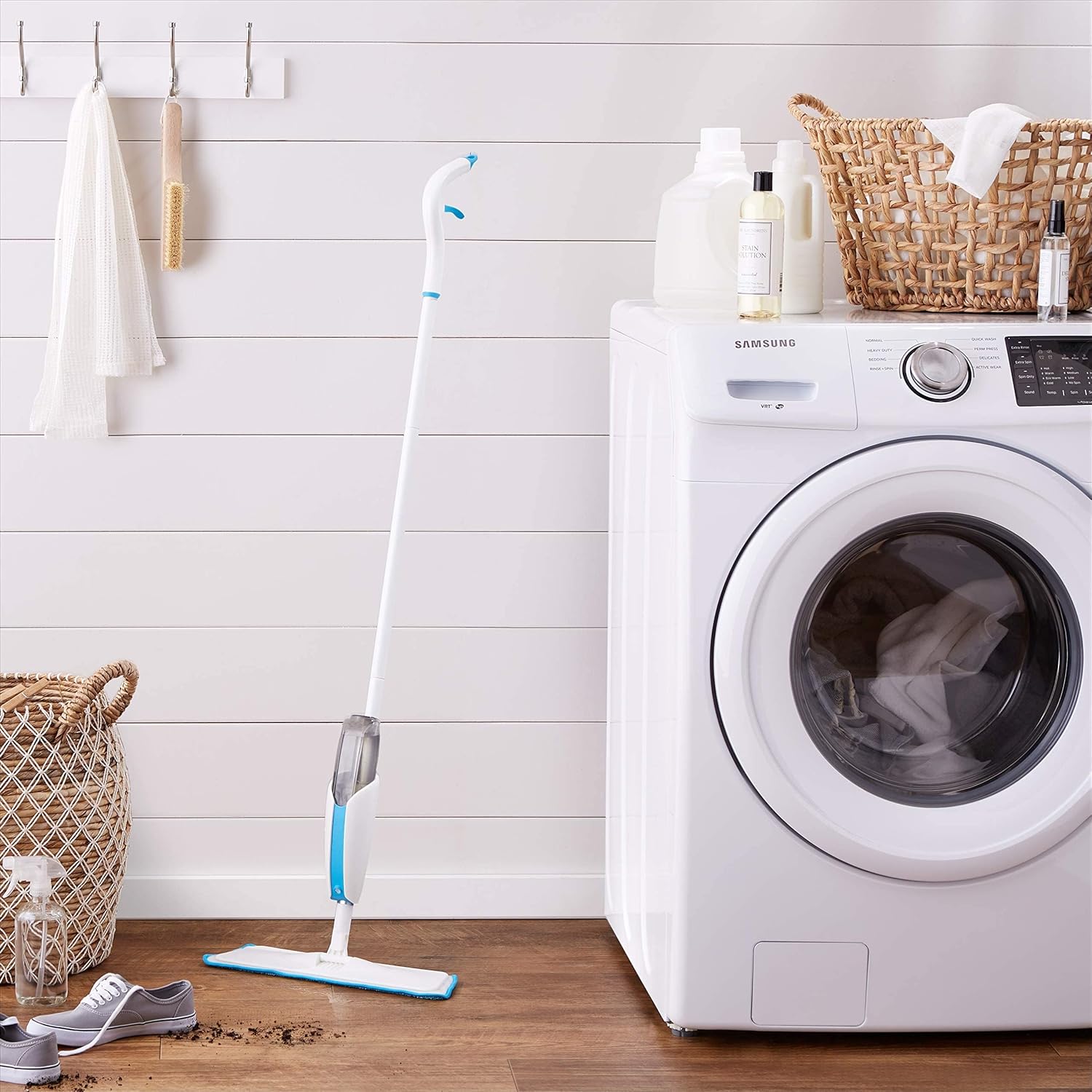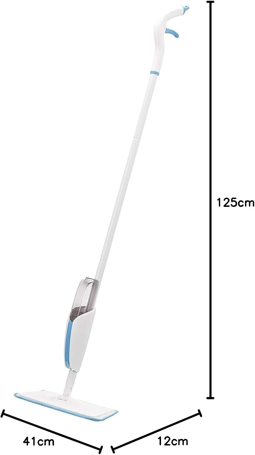 The Amazon Basics Spray Mop in Blue & White is designed for efficient cleaning of hard floors. It features a reusable, washable mop head that effectively attracts and locks in dust and dirt. With a 350 ml bottle for cleaning solution (sold separately), this mop allows for customizable cleaning with a responsive spray head that releases liquid ahead of the mop. This feature enables you to spray as much or as little as needed, making it ideal for spot cleaning.