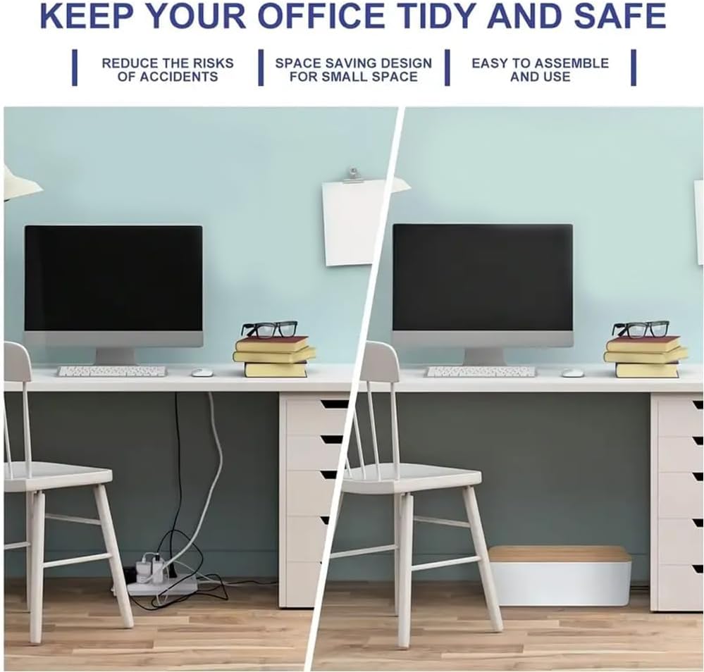 The AMERTEER Cable Organizer Box is designed to help you manage and conceal unsightly cables and power strips in your workspace or living area. With internal dimensions of 11.8'' (L) x 4.8'' (W) x 4.6'' (H), this compact box is ideal for keeping cords tidy and organized.