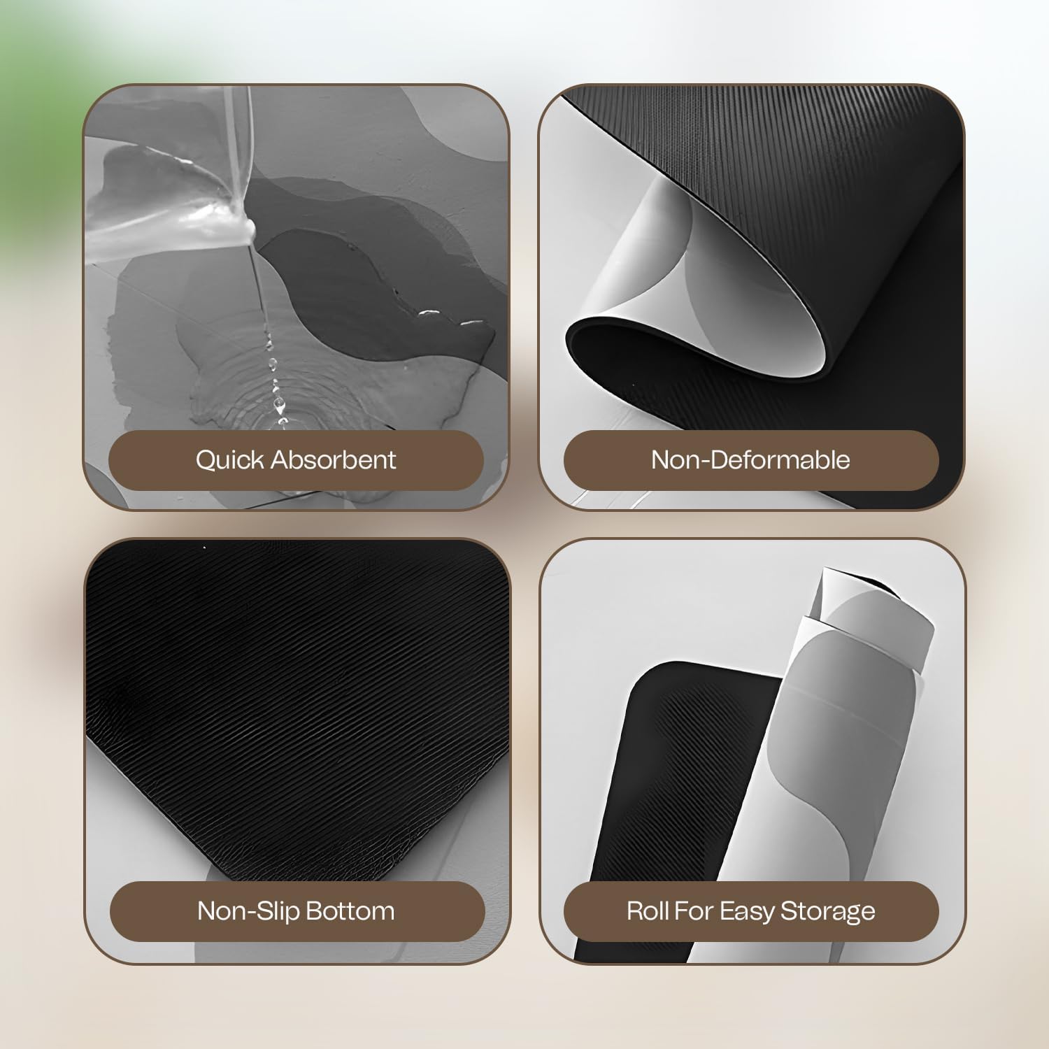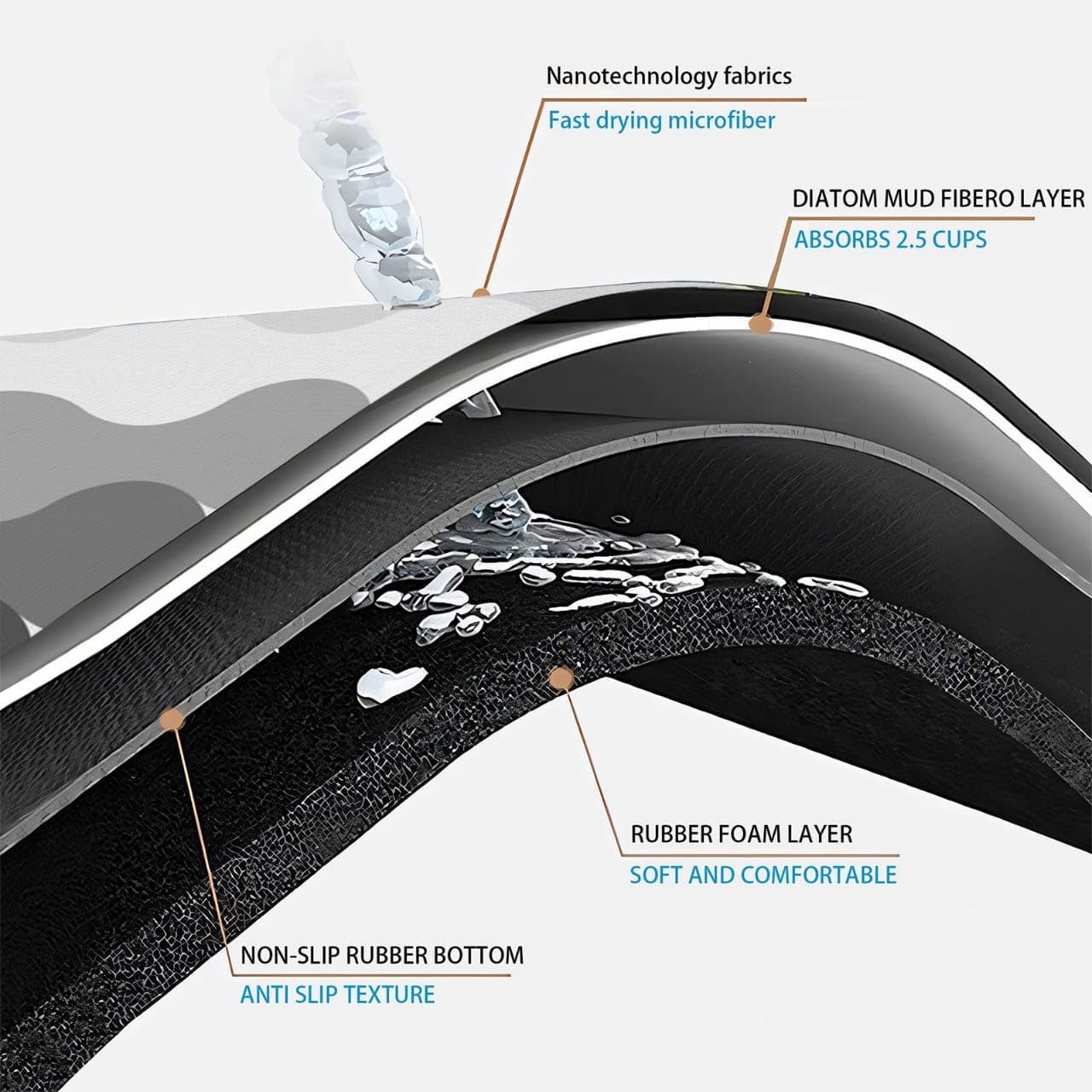 Upgrade your bathroom experience with the Zyphera Bath Mat, designed for comfort, safety, and style. This mat features advanced diatom mud technology, making it super absorbent and quick drying. The non-slip rubber backing ensures the mat stays securely in place, preventing slips on wet floors.