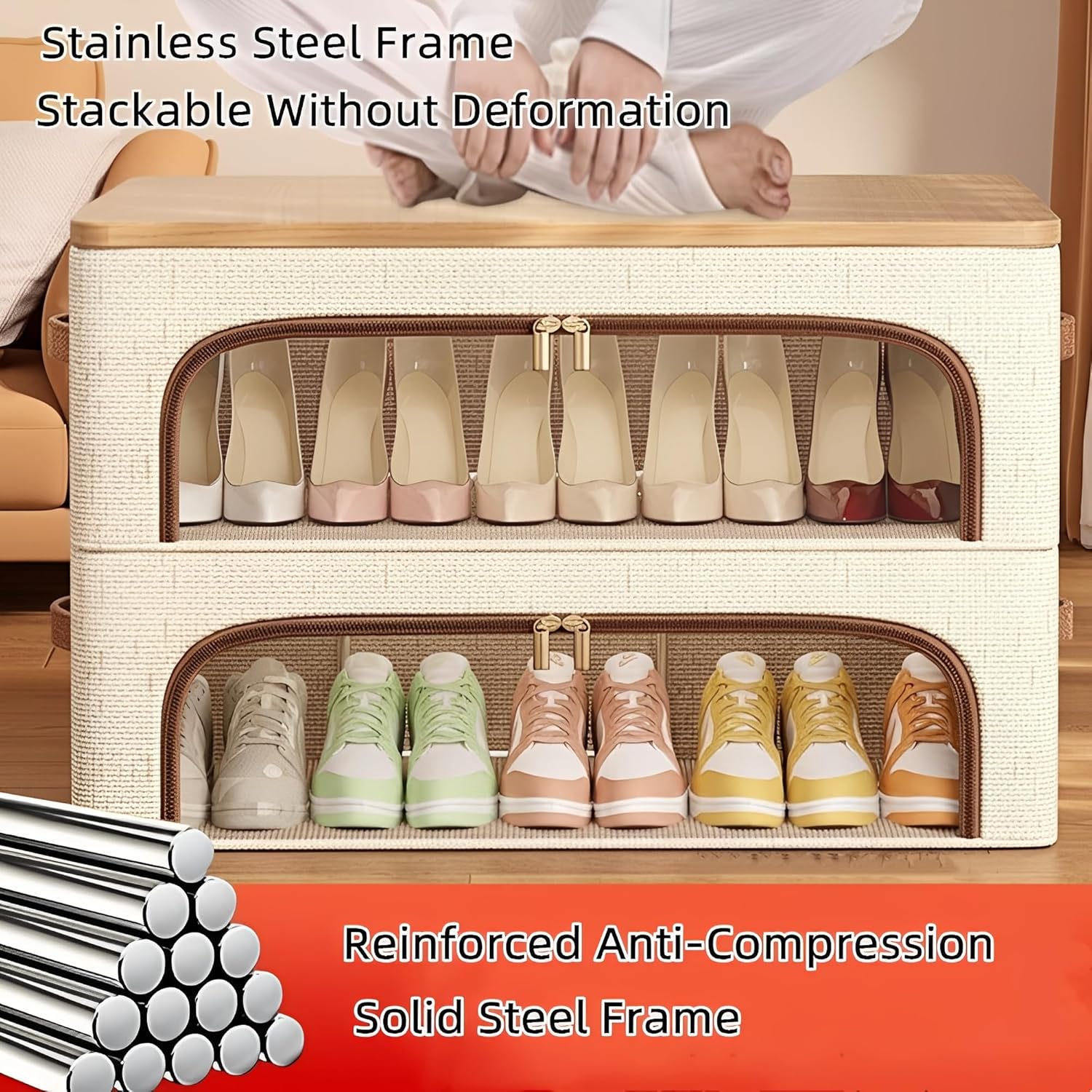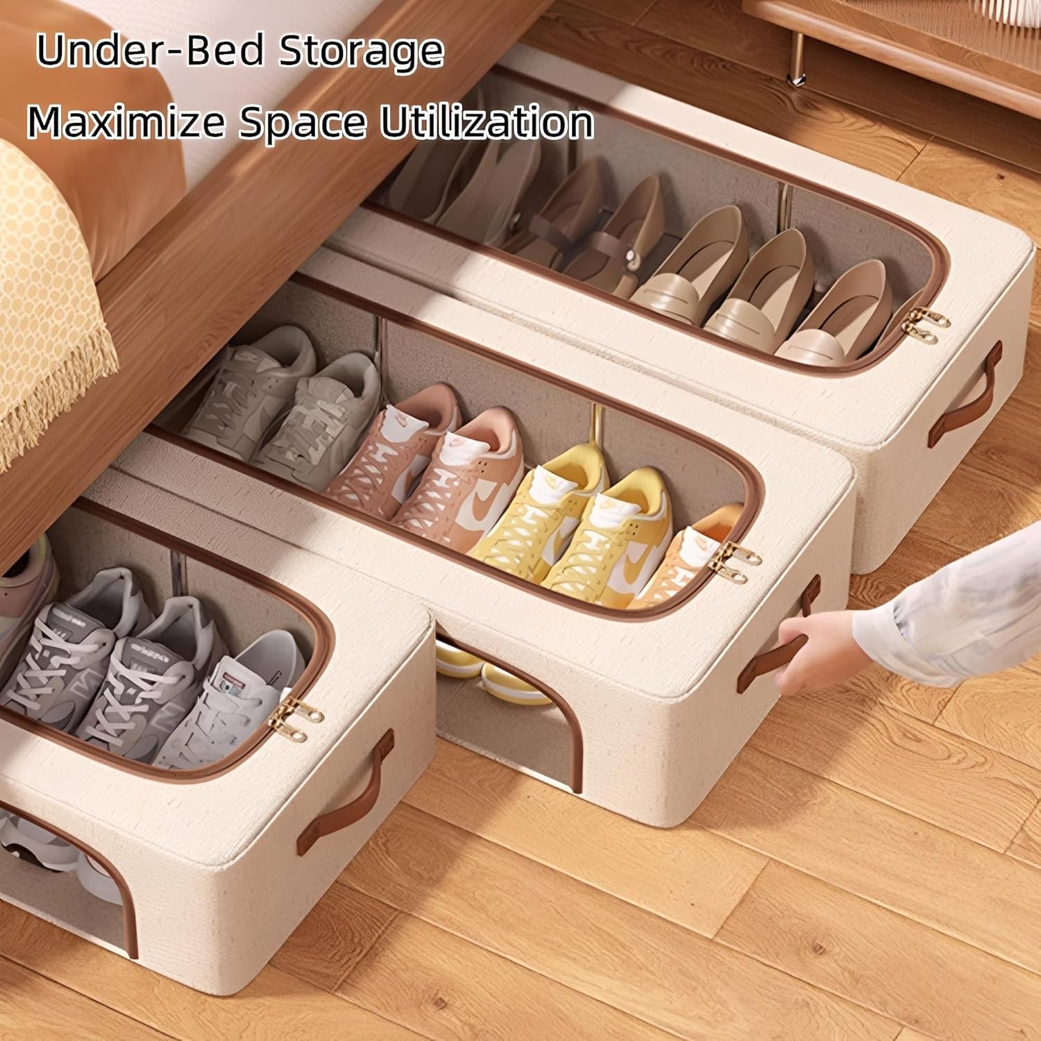 With large transparent windows on the top and sides, you can easily view and locate your shoes without having to open each box. The dual zipper and reinforced handle make accessing your footwear effortless. Enjoy a dust-proof design that protects your shoes from dirt and damage.