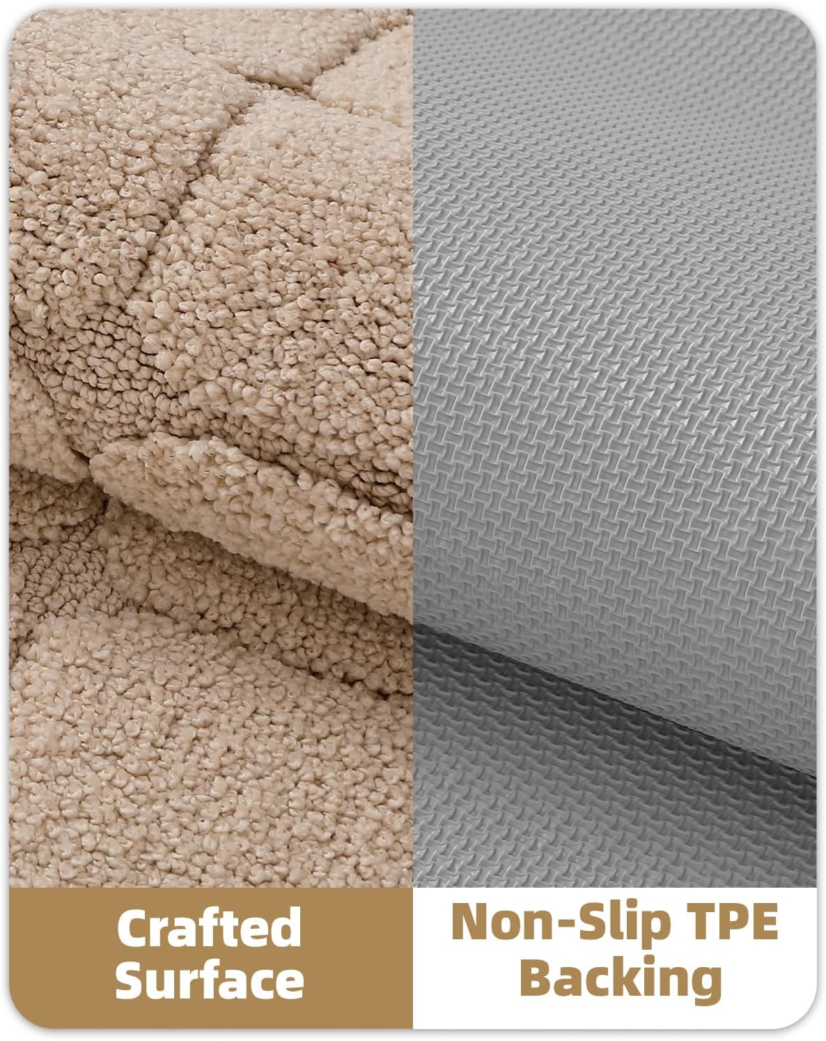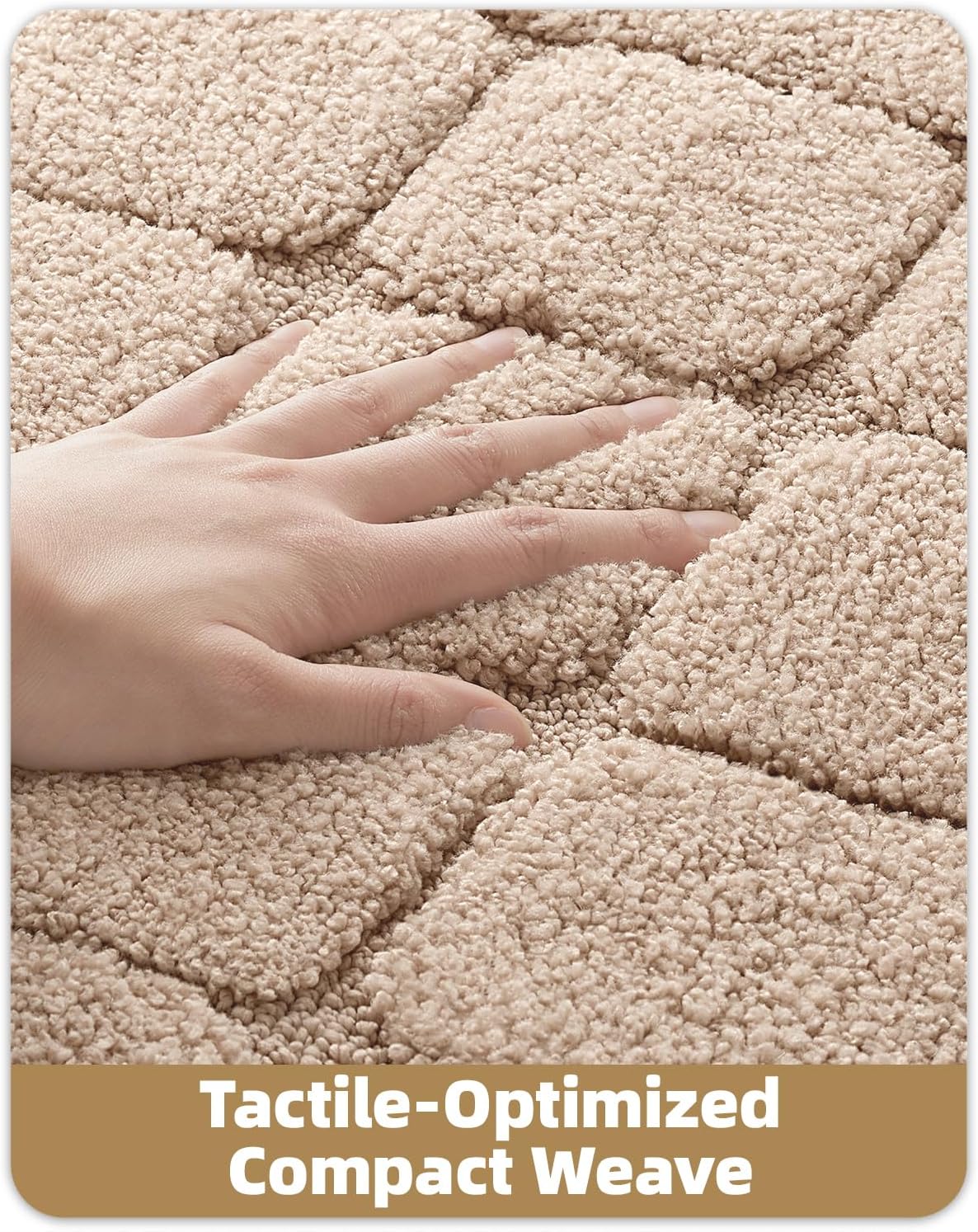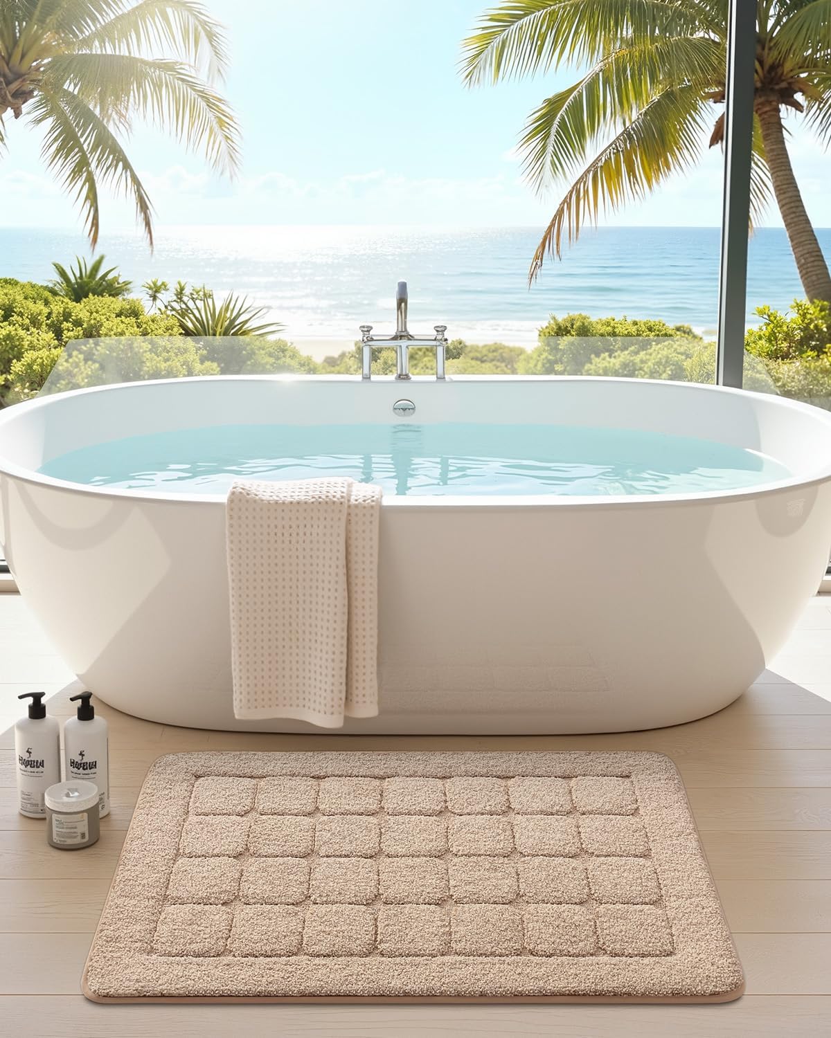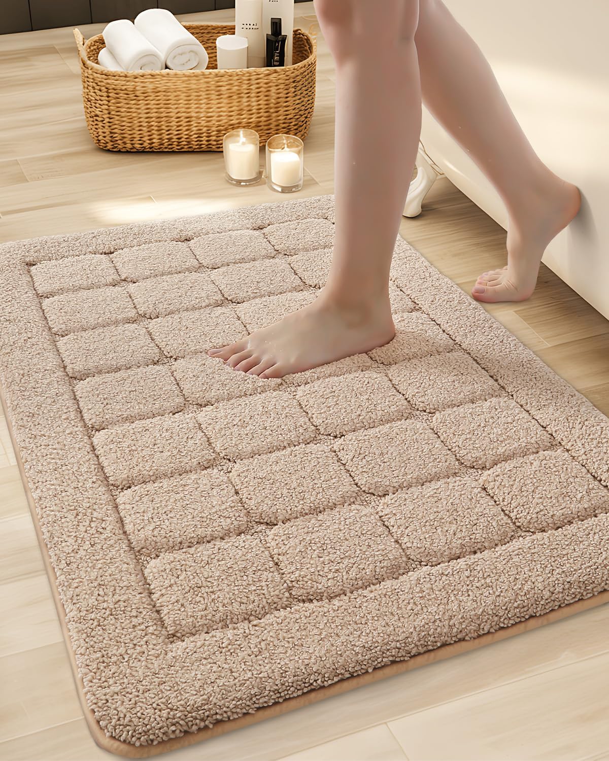 Color&Geometry Ultra Soft Bathroom Rug, Non Slip Machine Washable Bath Mat with Rubber Backing, Plush Fluffy Absorbent Carpet for Bathroom Floor, Tub and Shower, 24″x36″, Beige