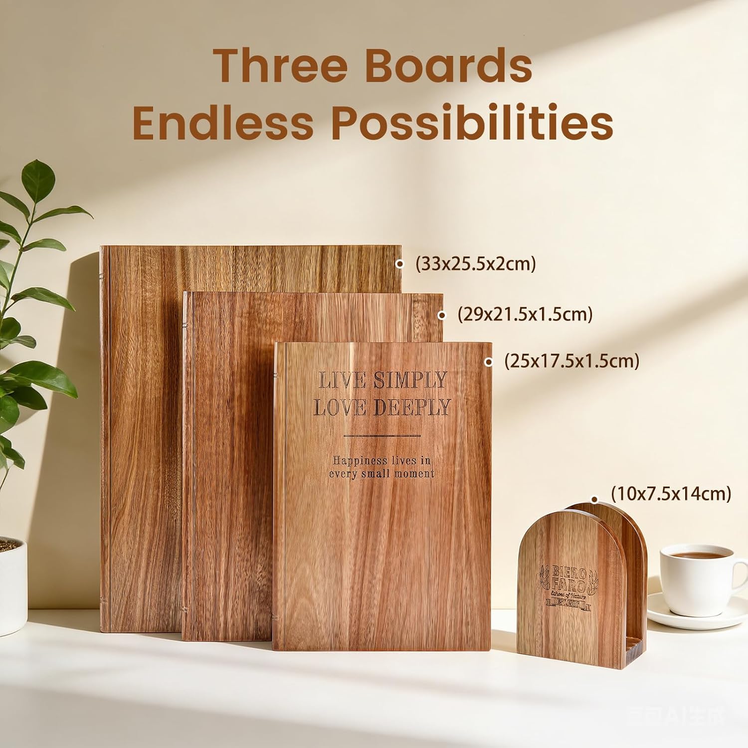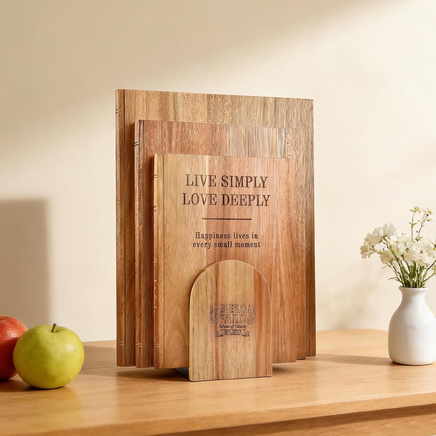 The Cutting Board Set of 3 is crafted from premium acacia wood, designed to enhance your kitchen experience. These boards feature a unique book shape that adds a decorative touch to your kitchen while being functional for various culinary tasks.