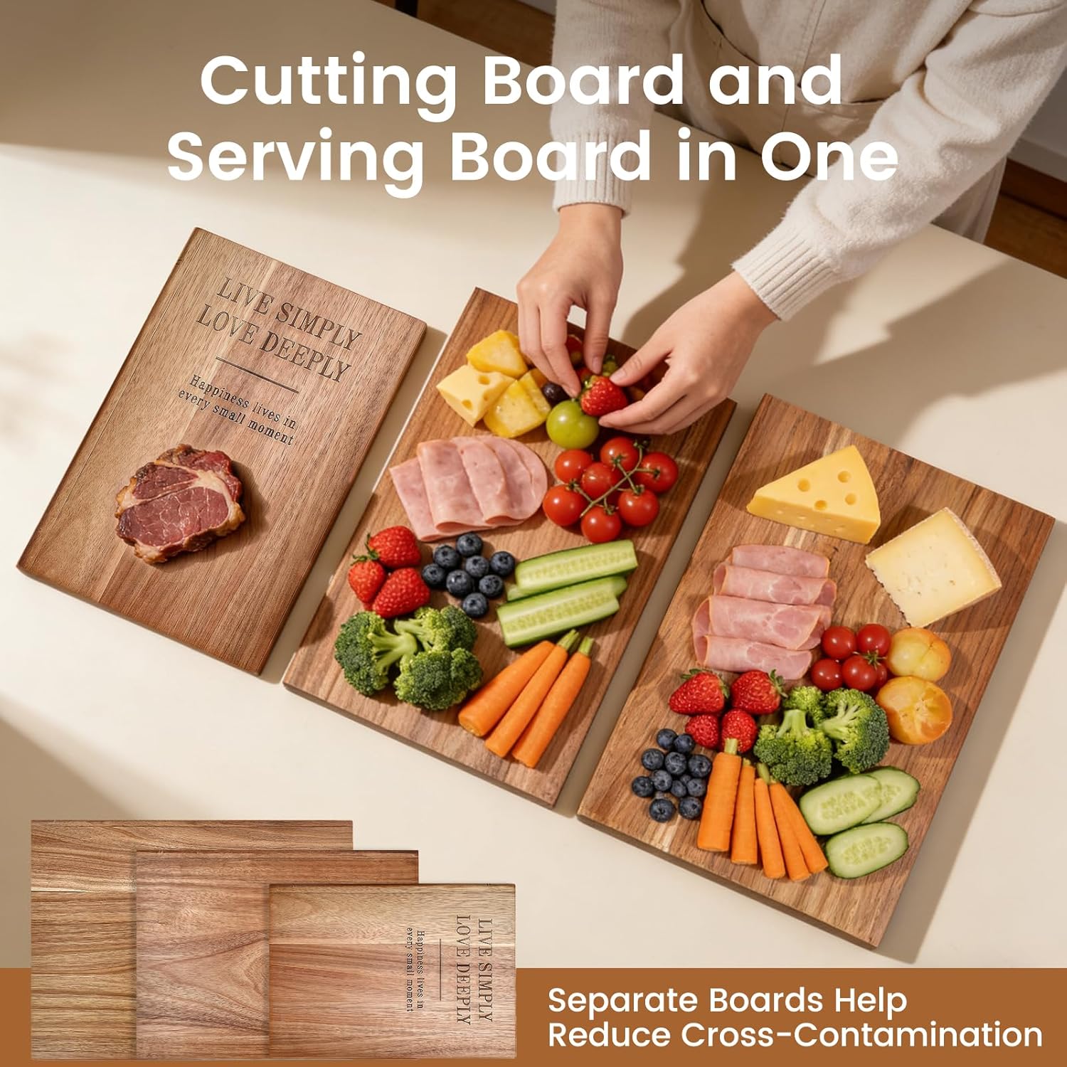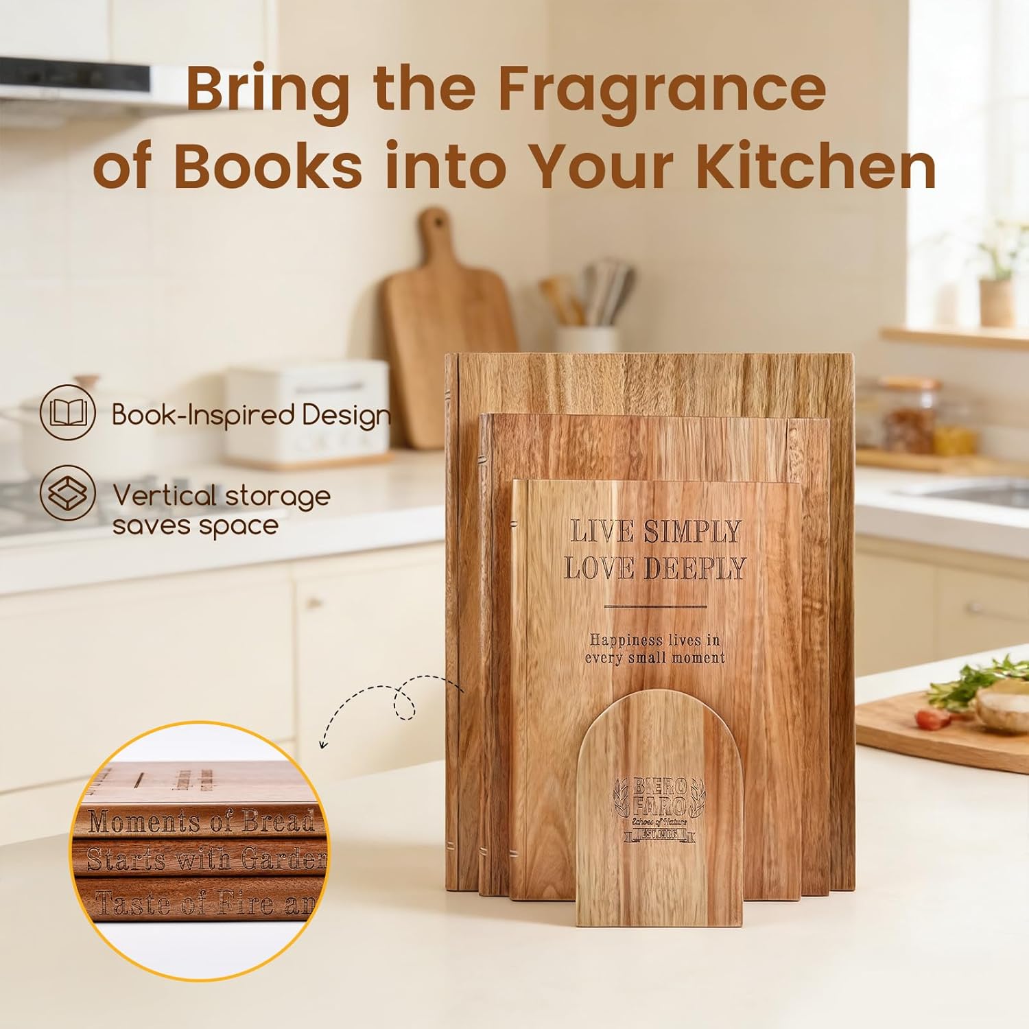 Cutting Board Set of 3 – Premium Acacia Wood Cutting Board Book Shape with Stand, Decorative Kitchen Boards for Cheese, Meat, Vegetables & Charcuterie, Unique Gift for Housewarming & Weddings