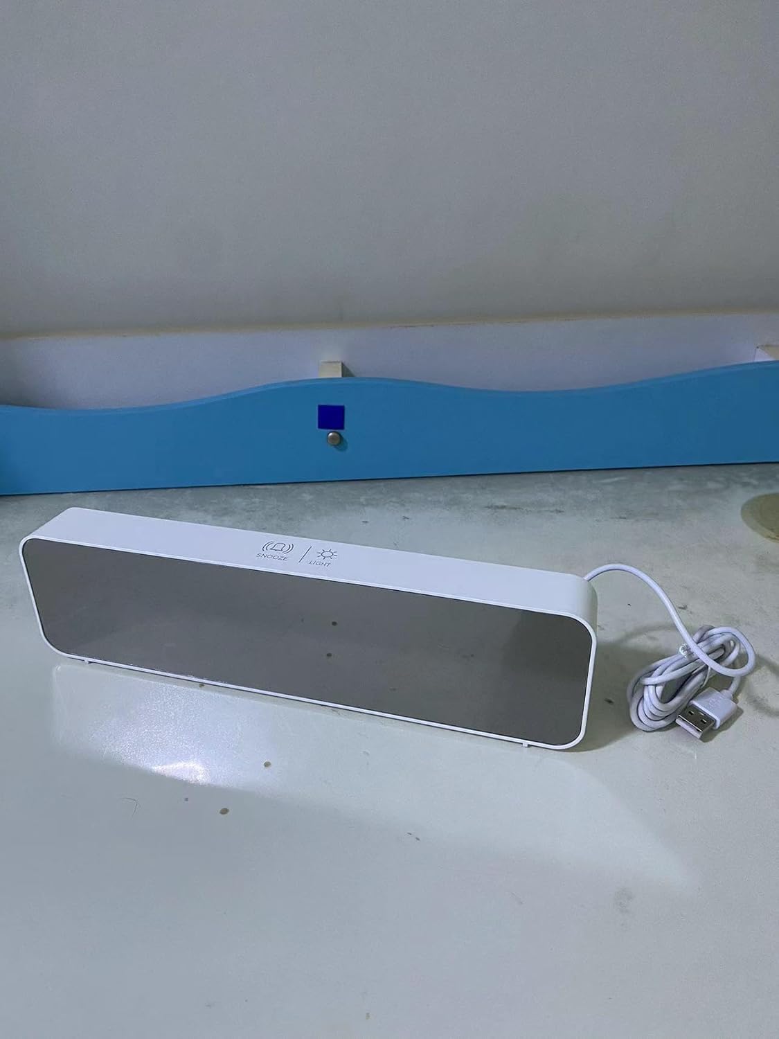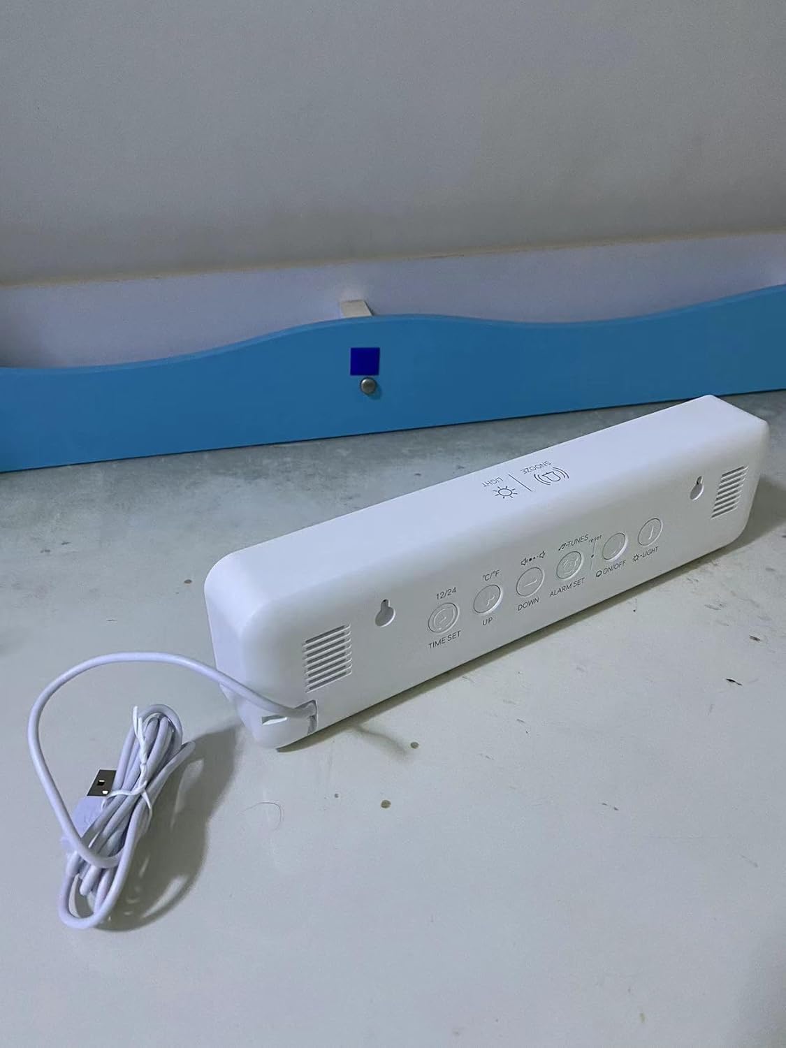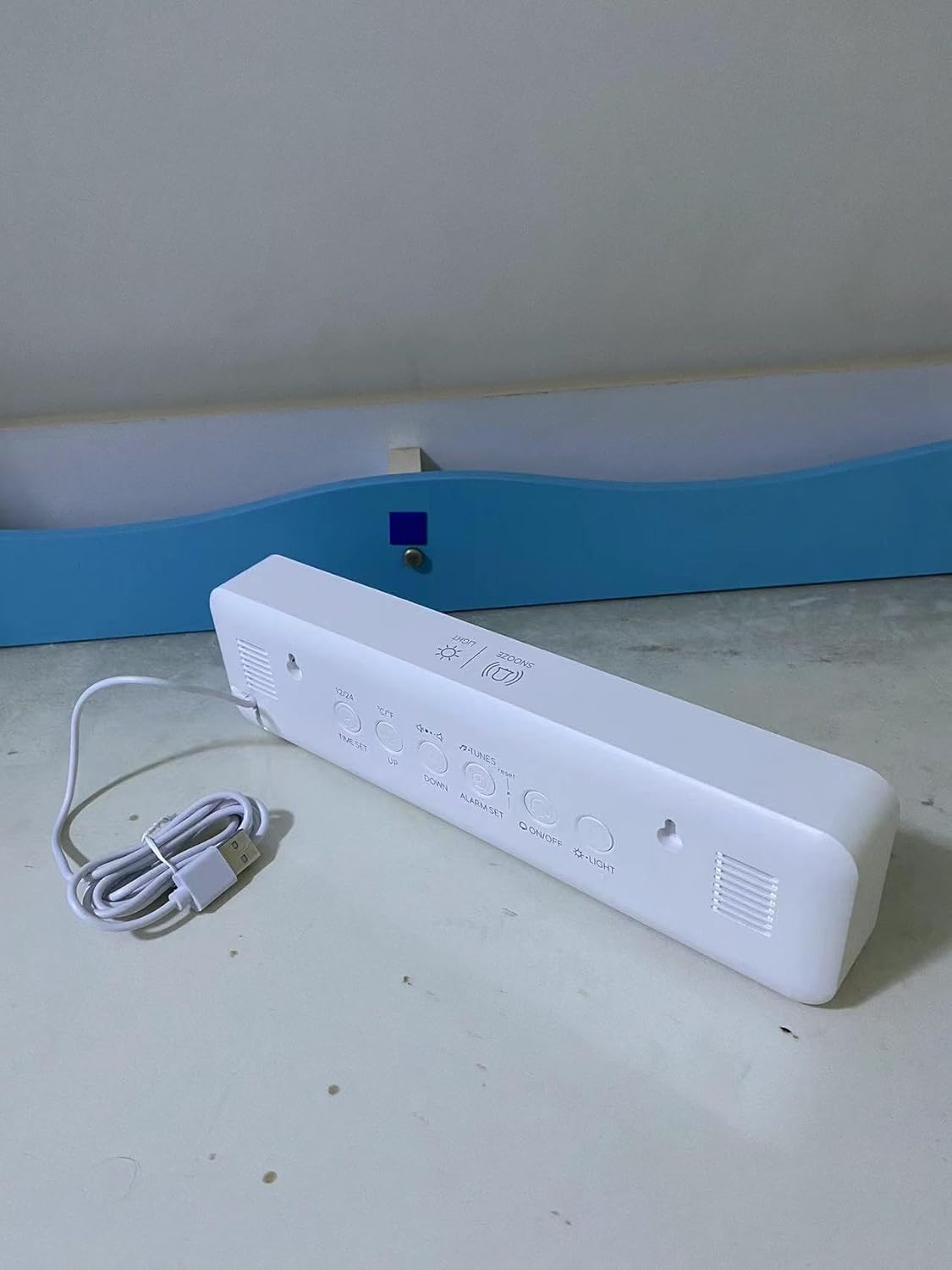 The Digital Clock features an upgraded LED display that is designed for easy readability from various angles. It shows the time, date, and temperature on the same screen, making it a practical addition to any room. The temperature can be displayed in both Fahrenheit and Celsius, catering to different preferences.