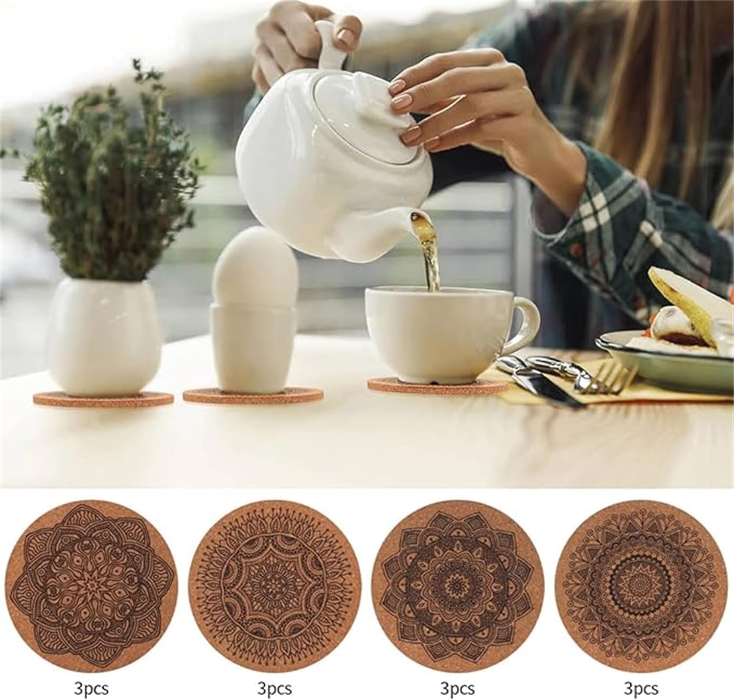 Made from sustainable cork, these coasters are reusable and durable.