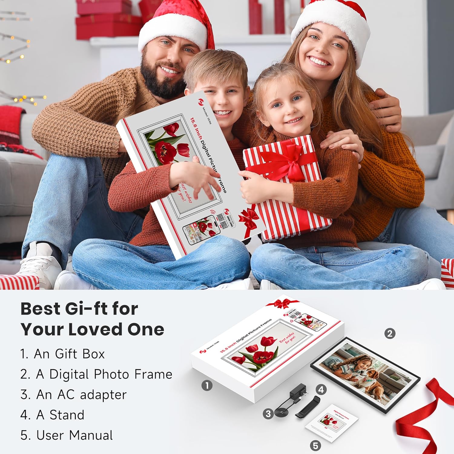 The Frameo 15.6 Inch WiFi Digital Photo Frame is designed to bring your cherished memories to life with its stunning 1920x1080 FHD IPS touch screen. This electronic picture frame allows you to share photos and videos instantly from anywhere using the Frameo app. With 64GB of memory, you can store a large collection of images and videos, making it a perfect addition to your home or office.