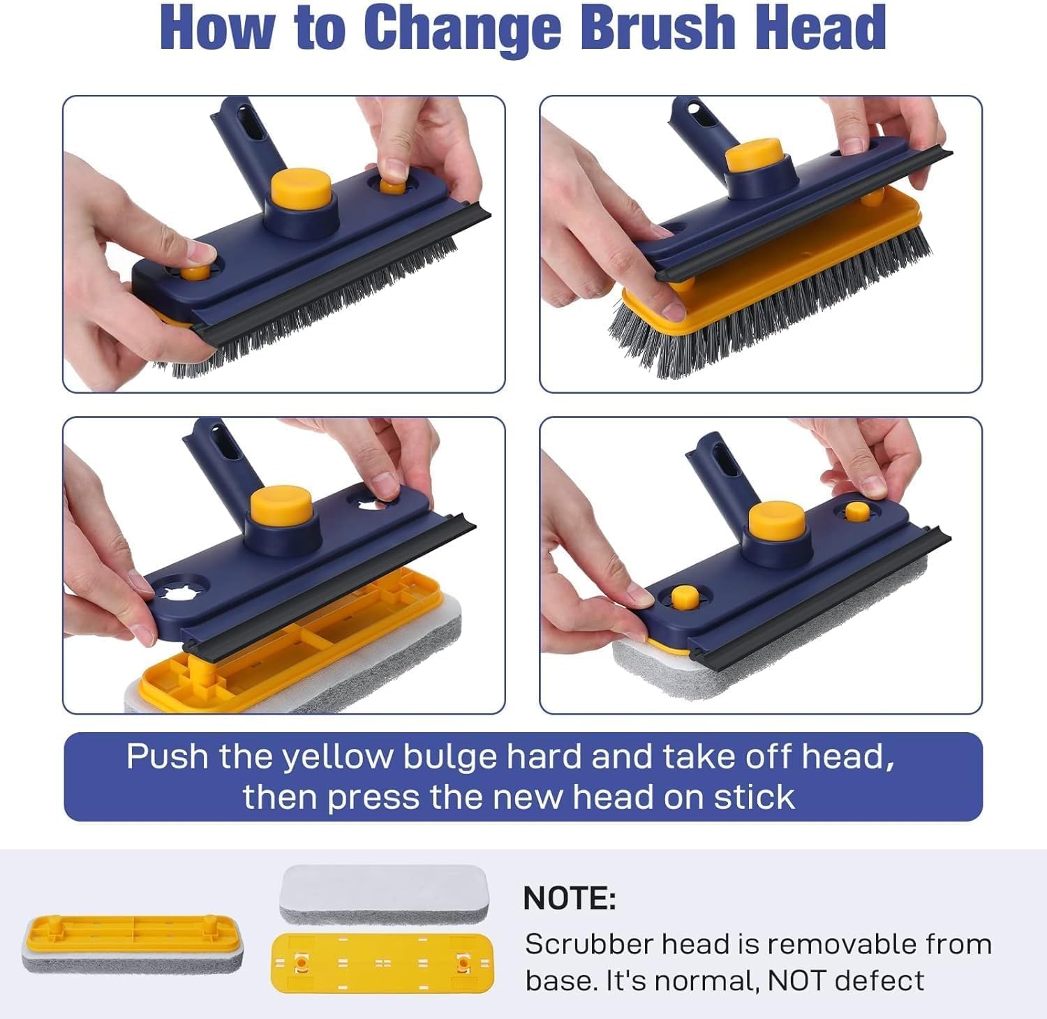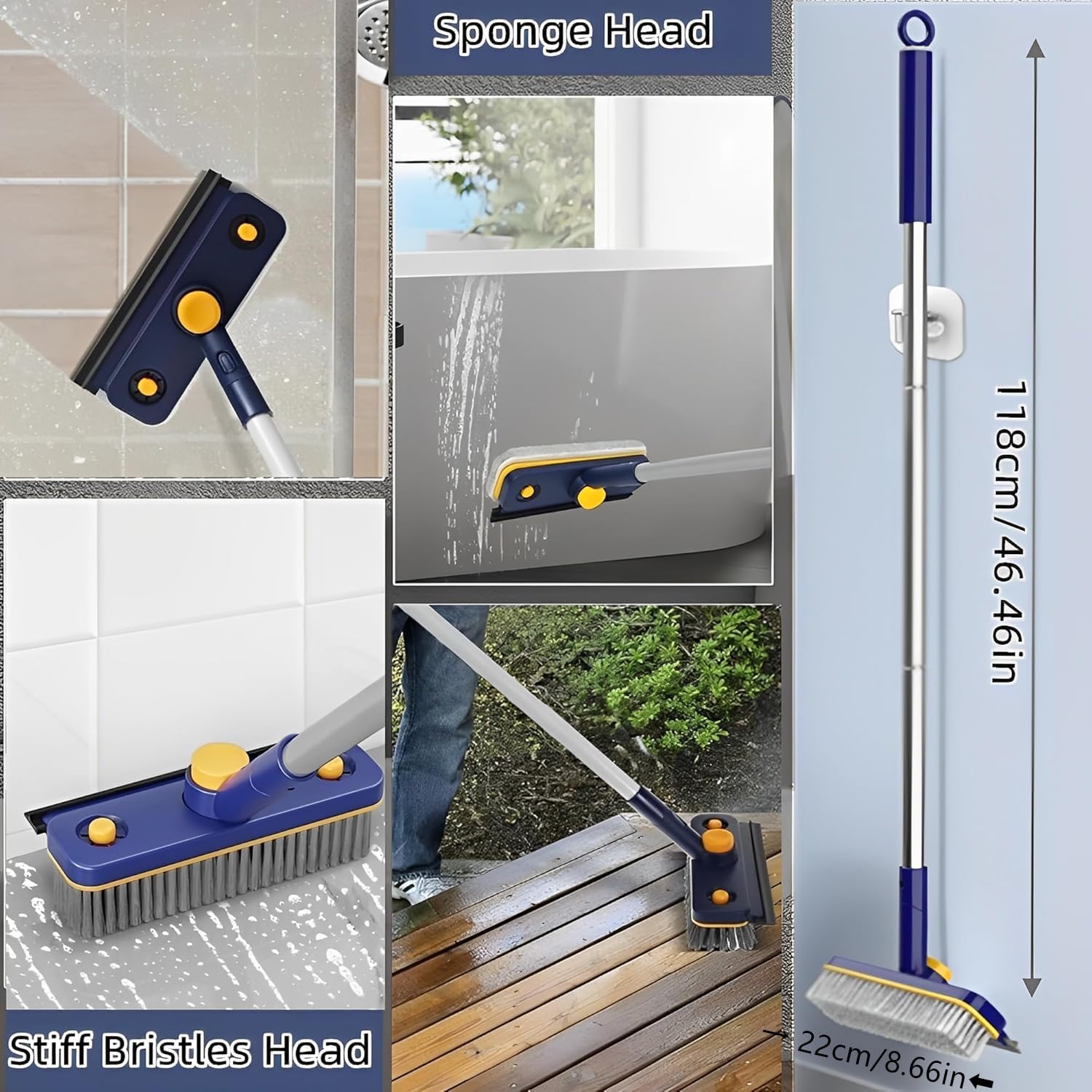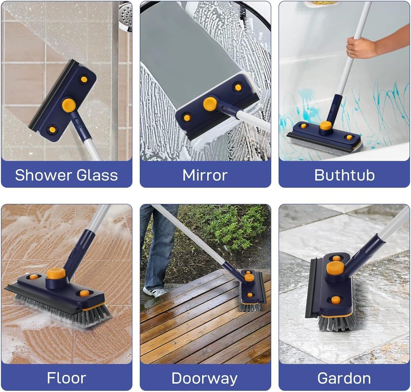 Generic 3 in 1 Floor Scrubber Brush with Long Stainless Steel Handle, Shower Tub Tile Scrub and Squeegee for Cleaning Bathtub, Bathroom, Sink, Wall, Glass, Patio, Garage