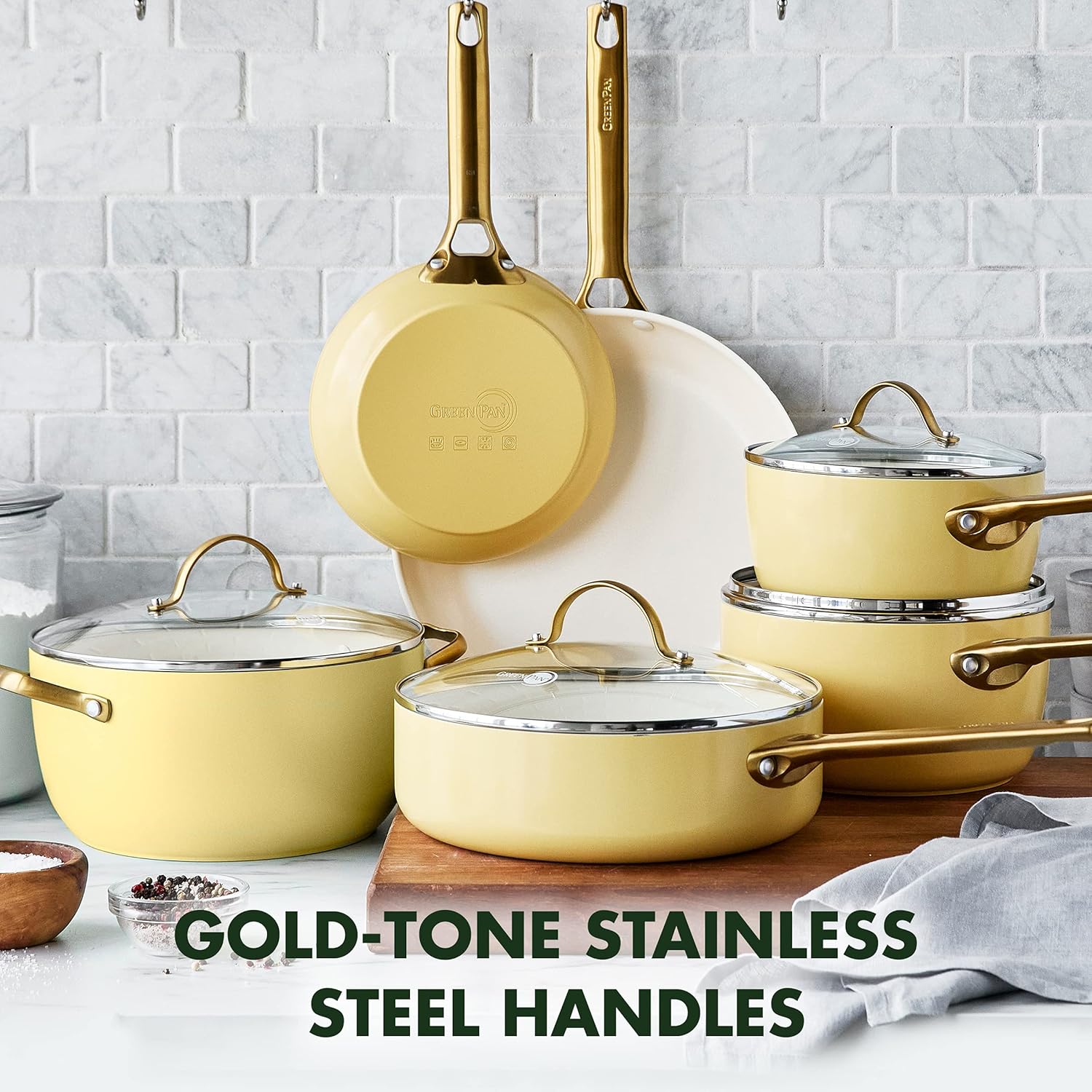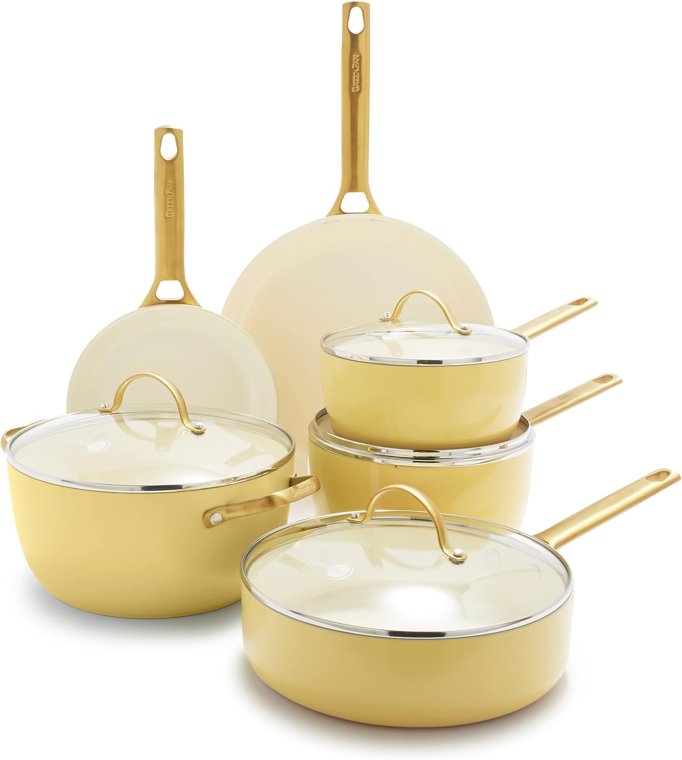 GreenPan Reserve Hard Anodized Healthy Ceramic Nonstick 10 Piece Cookware Pots and Pans Set, Gold Handle, PFAS-Free, Dishwasher Safe, Oven Safe, Sunrise Yellow