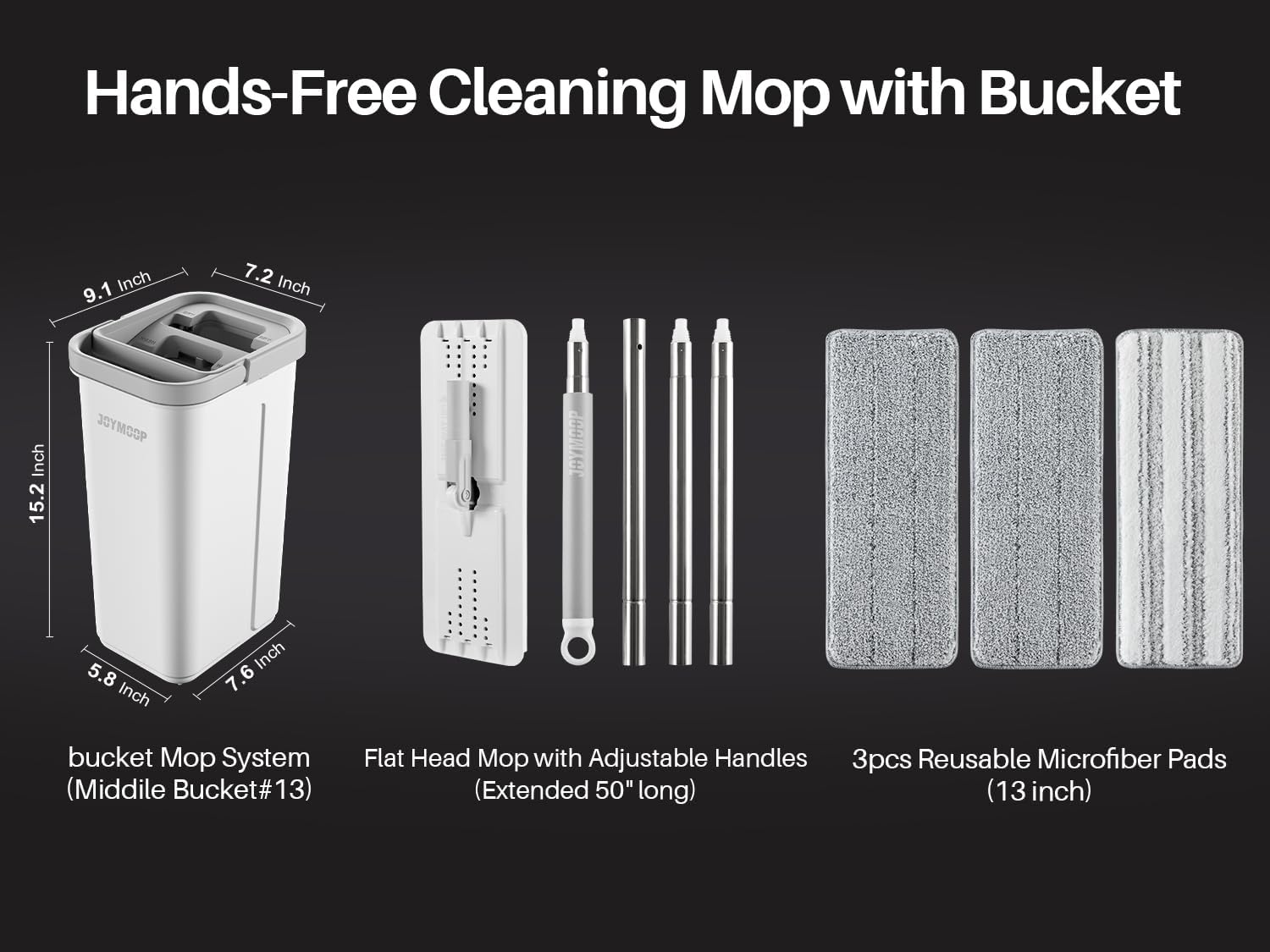 The JOYMOOP Flat Mop and Bucket with Spinner is designed for efficient floor cleaning, suitable for both wet and dry use. This comprehensive cleaning system includes three washable microfiber wipes, ensuring you have the right tools for various cleaning tasks.