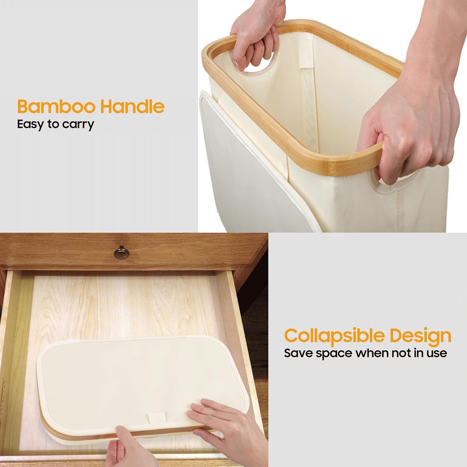 Its collapsible feature allows for easy storage when not in use, saving valuable space. The bamboo handles provide a comfortable grip, making it easy to transport your laundry wherever needed.