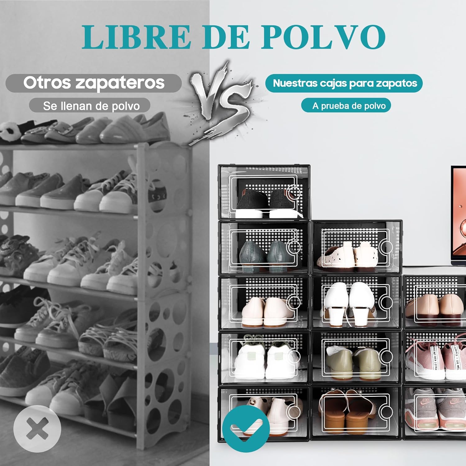 Kuject Shoe Organizers Storage Boxes for Closet, 12 Pack Clear Plastic Stackable Sneaker Containers Bins with Lids, Under Bed Shoe Storage for Entryway, Fit up to Women’s Size 10 (Black, Large)