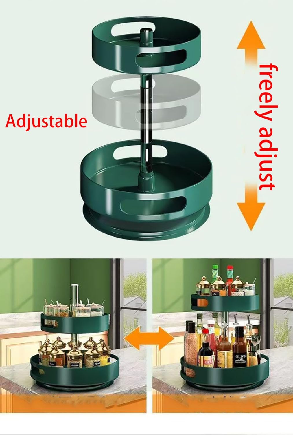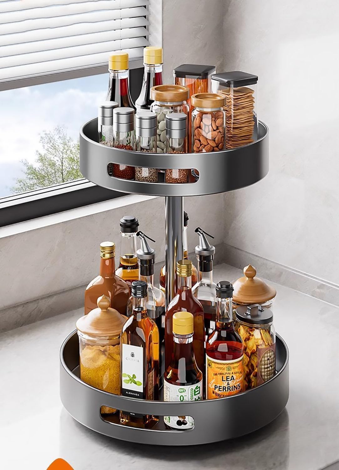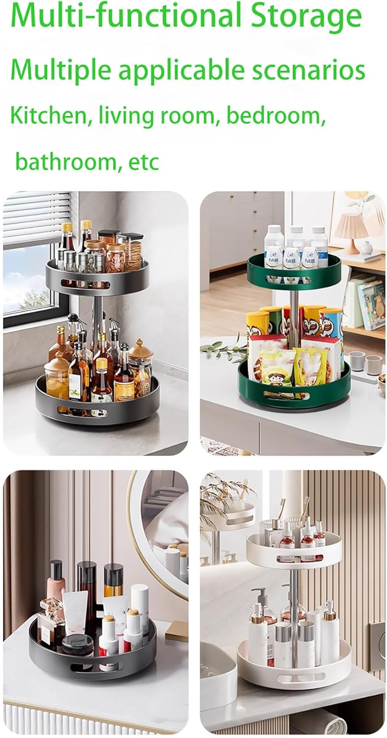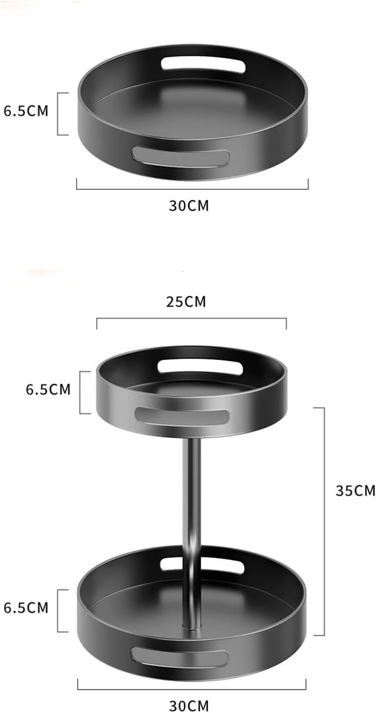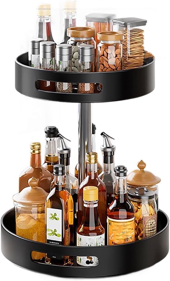 Lazy Susan Turntable Organize,Metal Steel 360° Rotating Spice Rack Organiser with Turntable, Black, 30 cm Diameter, with Carrying Handles for Kitchen Pantry Cabinet (Large, 2-Tier)