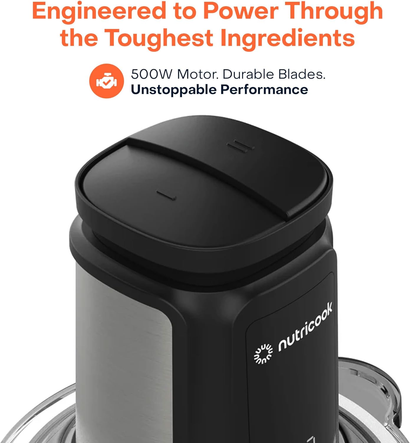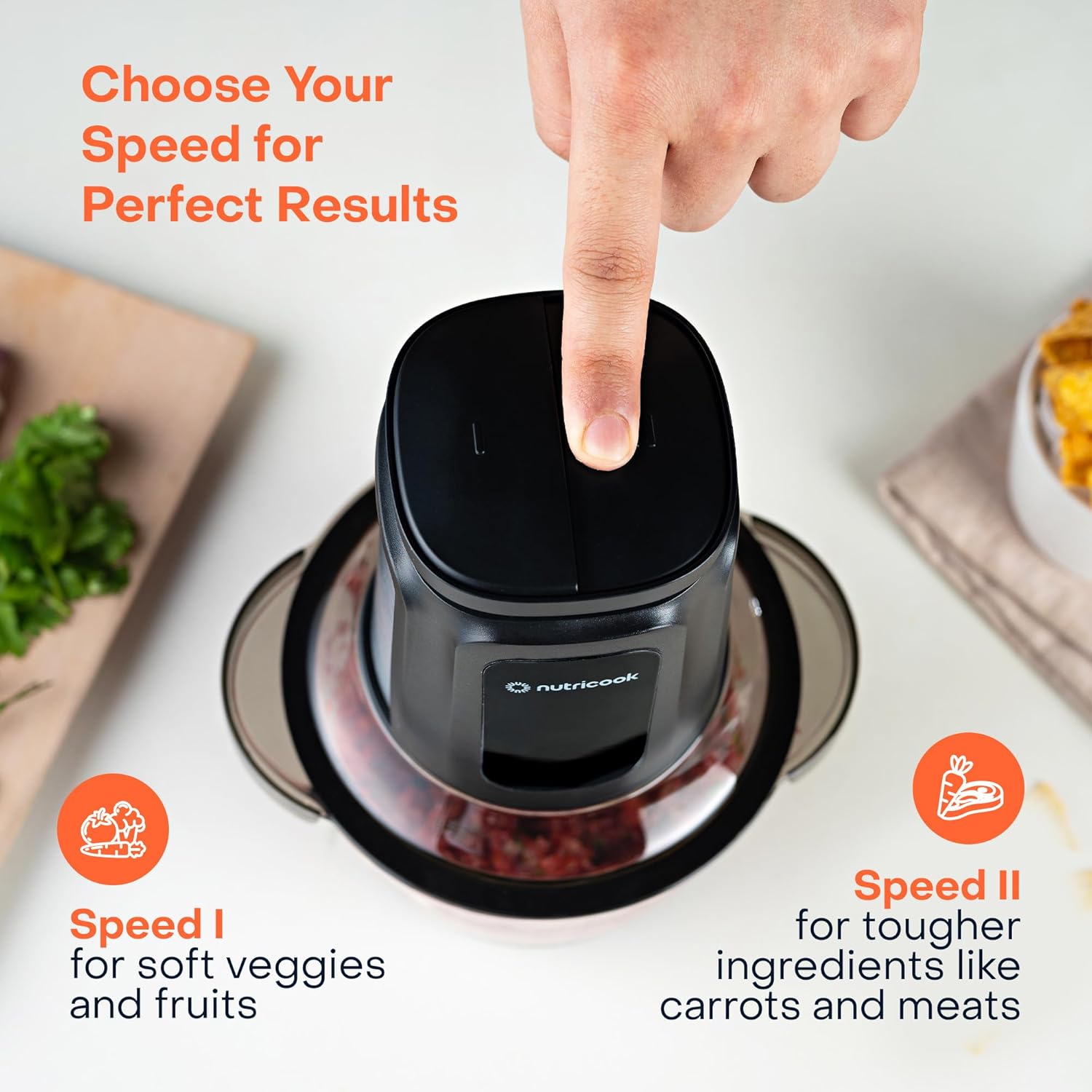 Nutricook Multi Purpose Glass Chopper & Mincer, 500 W, 1.2L with 4 SS Blade detachable System, easy to clean, Pulse speed for precision, Ice Crushing, Anti Slip ring, 2 Yr Warranty, NC-CH1200 Black