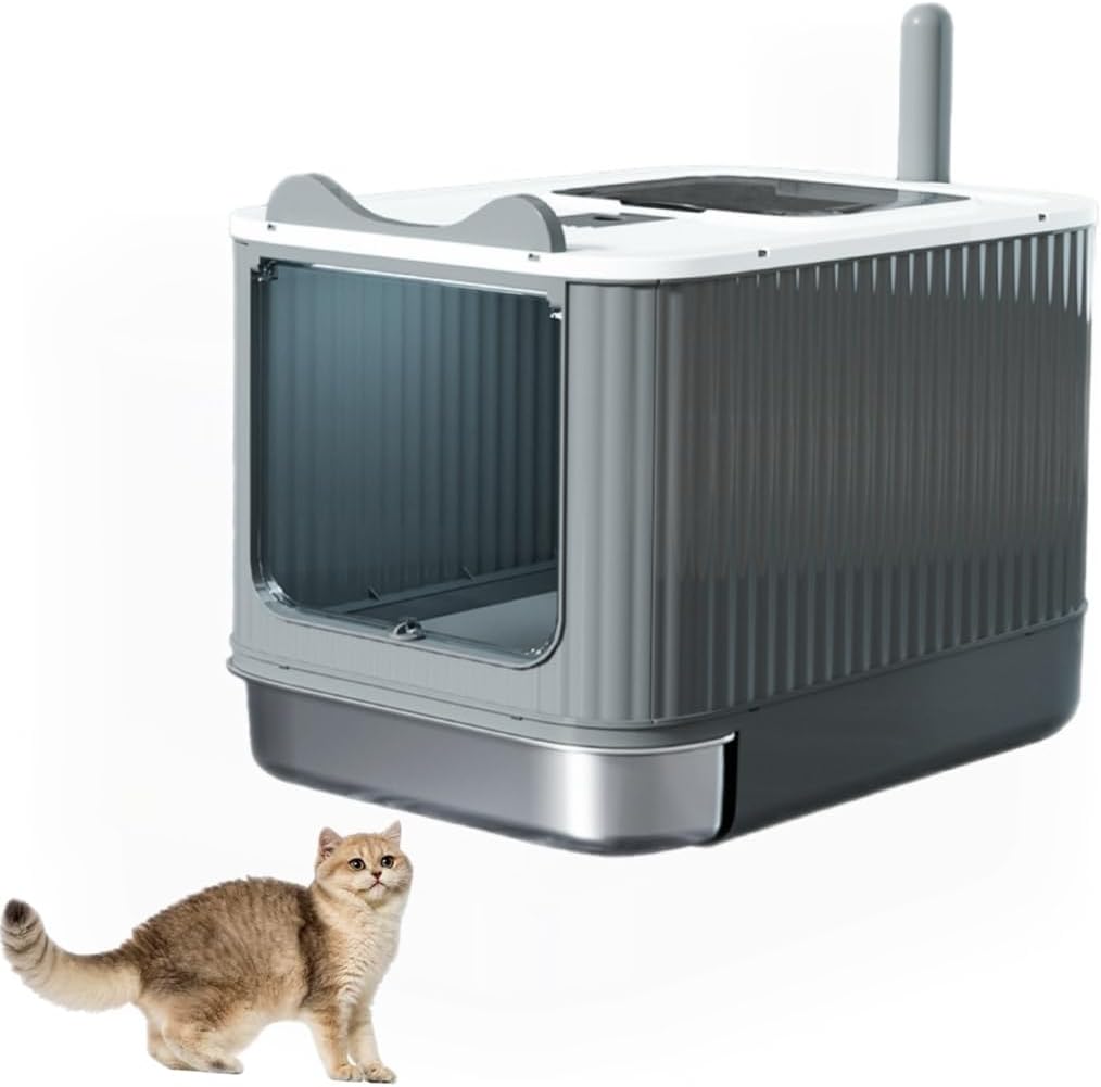 ORCHID M®Upgraded Fully Enclosed Cat Litter Box with Lid, Covered Cat Box Enclosure, Anti-Splashing Easy to Clean Kitty Litter Boxes with Drawer, Use from Kitten to Adult(White&Grey)