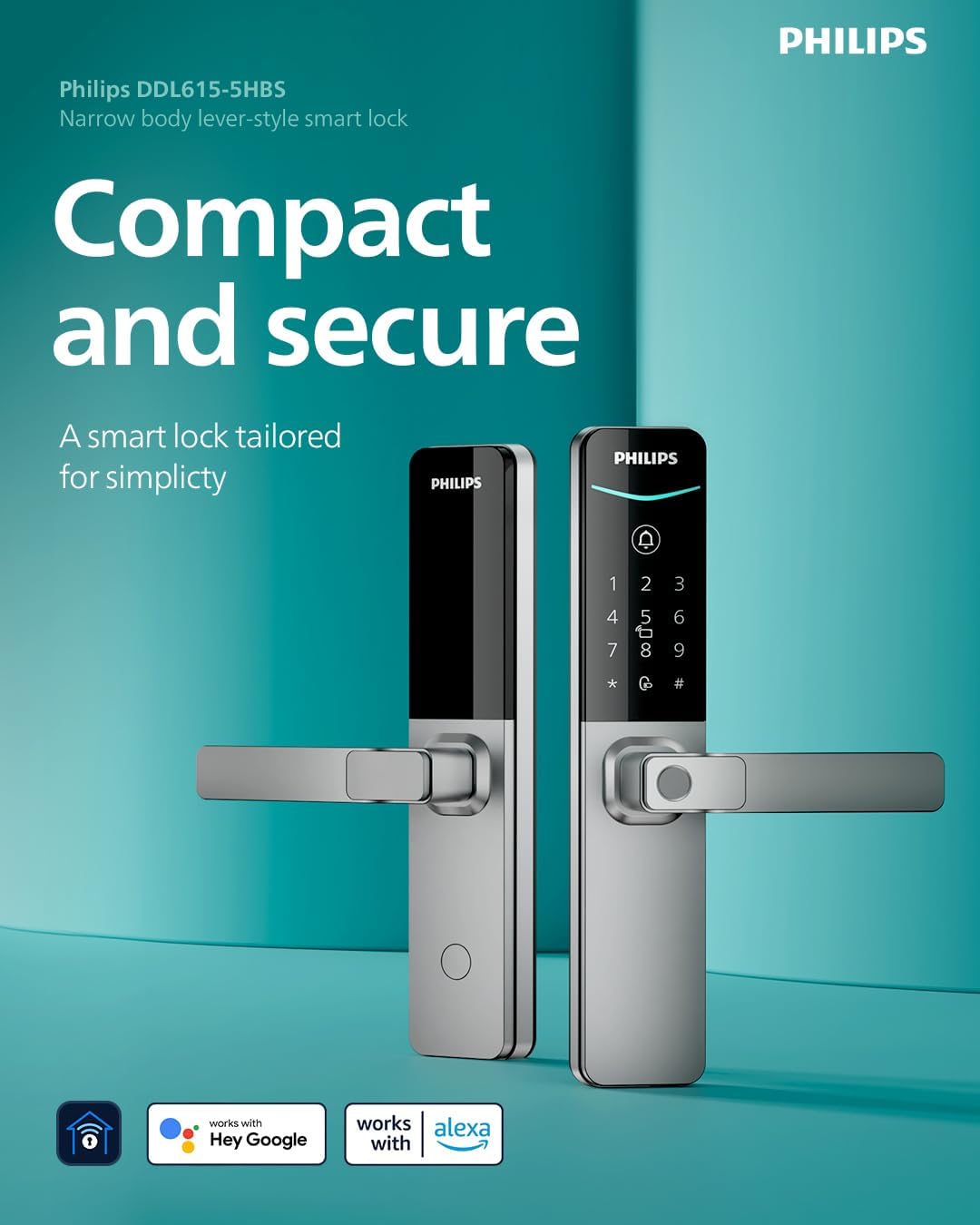 The Philips DDL615-5HBS Smart Door Lock offers a compact design with a minimalist 56mm-wide panel, making it a perfect fit for modern doors. This lock features a one-touch unlocking system that utilizes advanced biometric technology for quick and secure access. With the dedicated Home Access App, you can manage access codes remotely, ensuring you have control over who enters your home.
