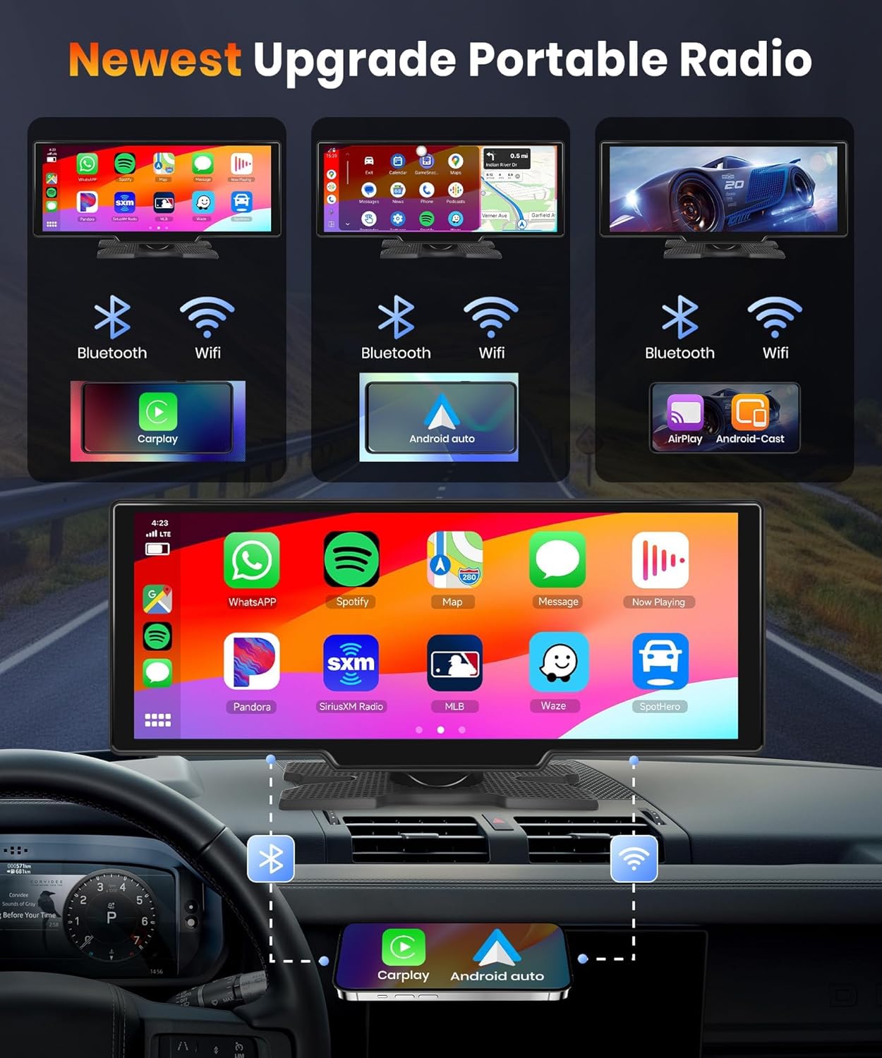 The Podofo 10.26 Touchscreen Portable Wireless Car Stereo is designed for seamless integration with your vehicle. This versatile device supports both Apple CarPlay and Android Auto, allowing you to access your smartphone features safely while driving. With a 10.23-inch touchscreen, it provides a user-friendly interface for navigation, music, and calls.