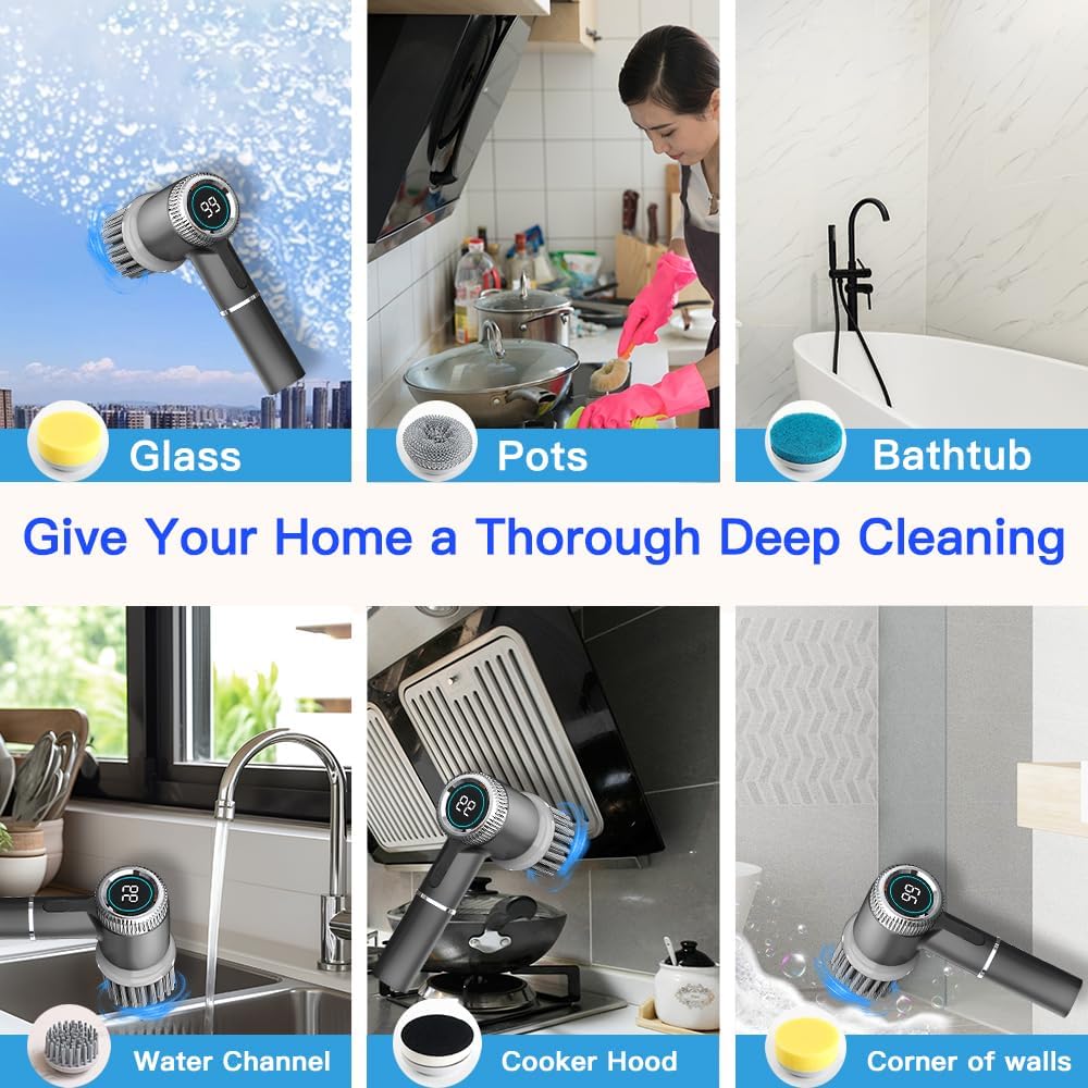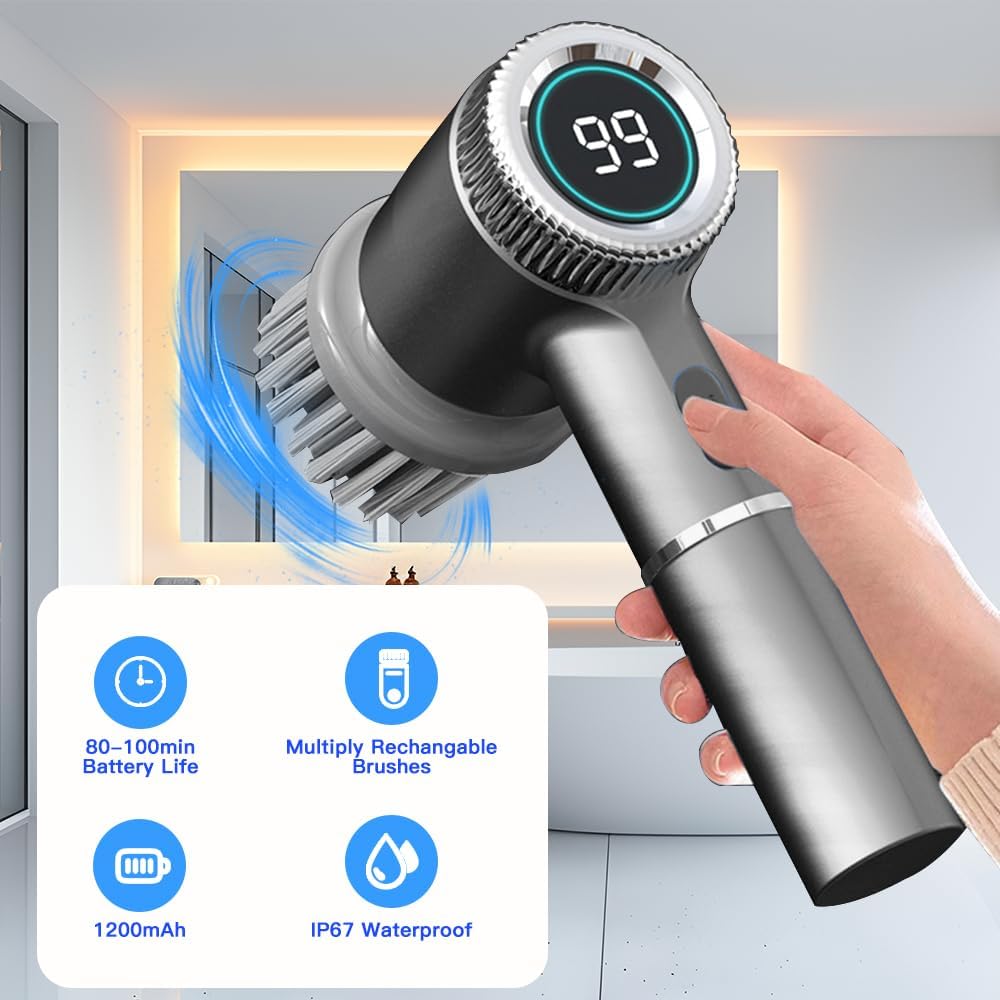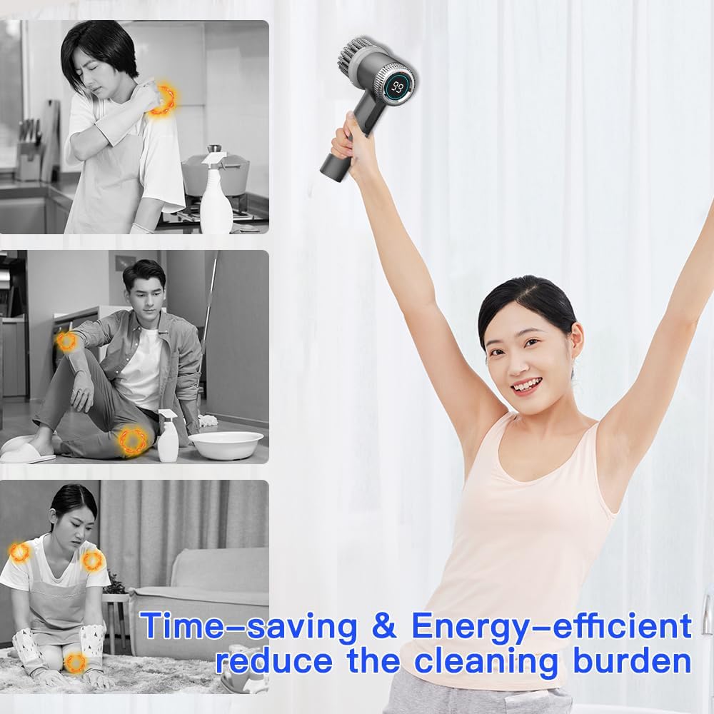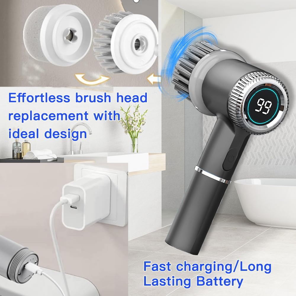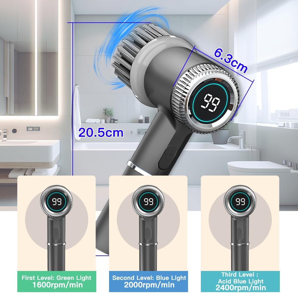 The Rechargeable Electric Spin Scrubber by Uoexziyi is designed to make your cleaning tasks easier and more efficient. This cordless cleaning brush features a long handle, allowing you to reach high or low areas without straining your back. It comes with three replaceable brush heads, making it versatile for various surfaces such as bathroom tubs, floors, tiles, and even shoes.