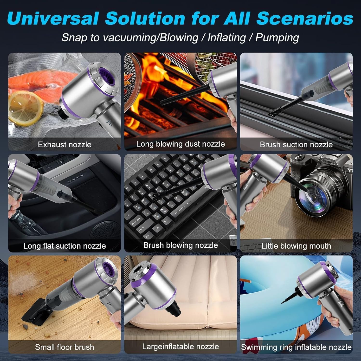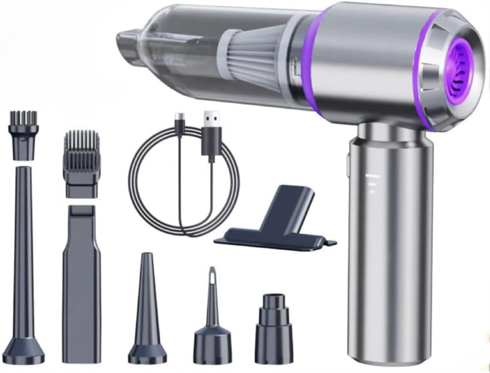 The SKY-TOUCH Portable Handheld Cordless Vacuum Cleaner is a versatile tool designed for various cleaning tasks. This 4-in-1 device functions not only as a vacuum cleaner but also as an air duster, air blower, and pump, making it suitable for use at home, in the car, or while camping.