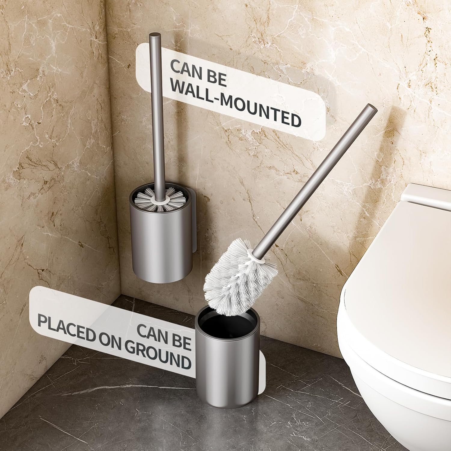 Toilet Brush, Toilet Brush and Holder Set, Bathroom Cleaning Brush, Rust-Free with 304 Stainless Steel Handle Toilet Cleaner Brush with Durable Scrubbing Brush, Splash-Proof
