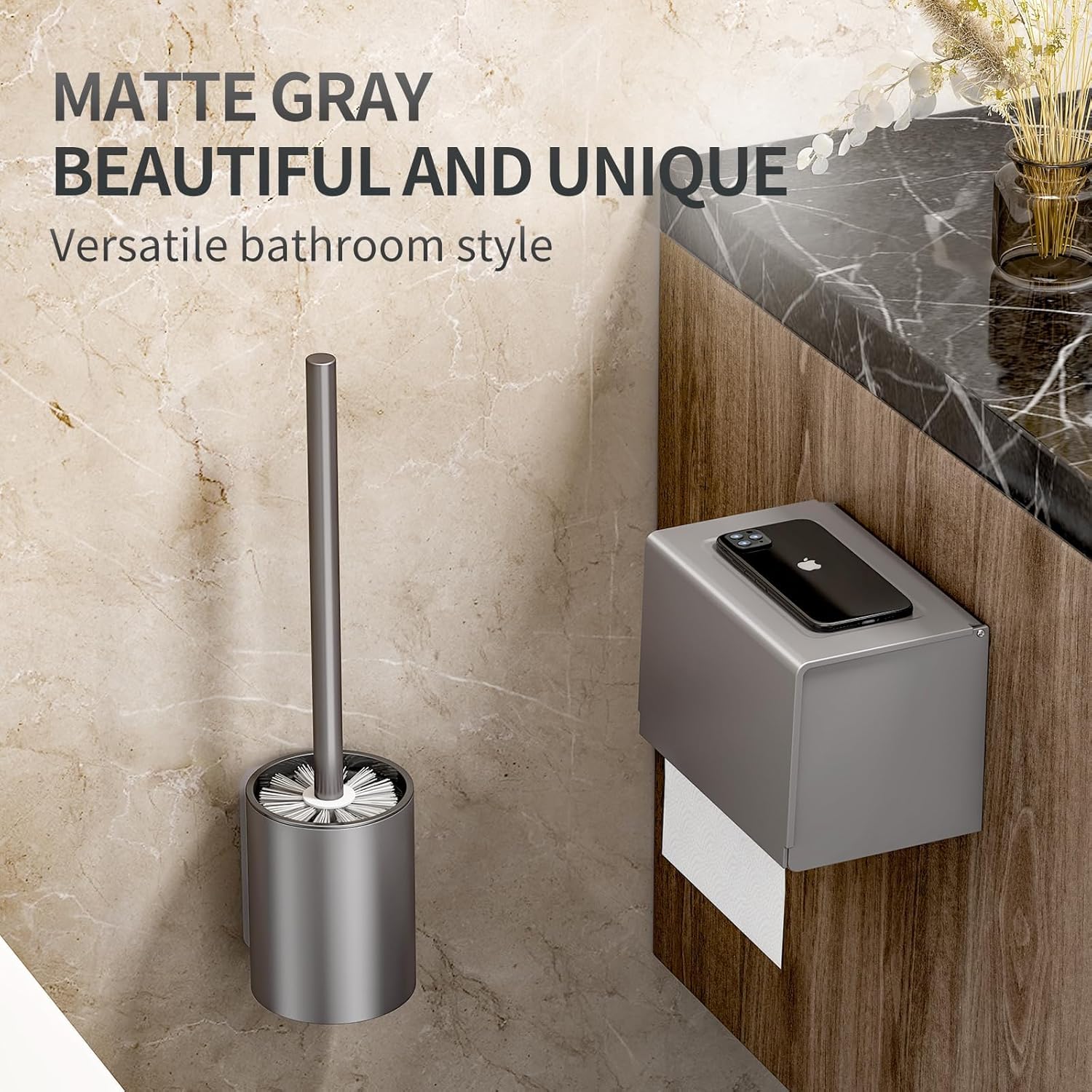 Introducing our Toilet Brush and Holder Set, designed for effective bathroom cleaning. Made from high-quality space aluminum, this toilet brush is not only lightweight but also offers exceptional rust resistance, ensuring long-lasting durability. Its sleek design complements any bathroom decor, making it a stylish addition to your cleaning tools.