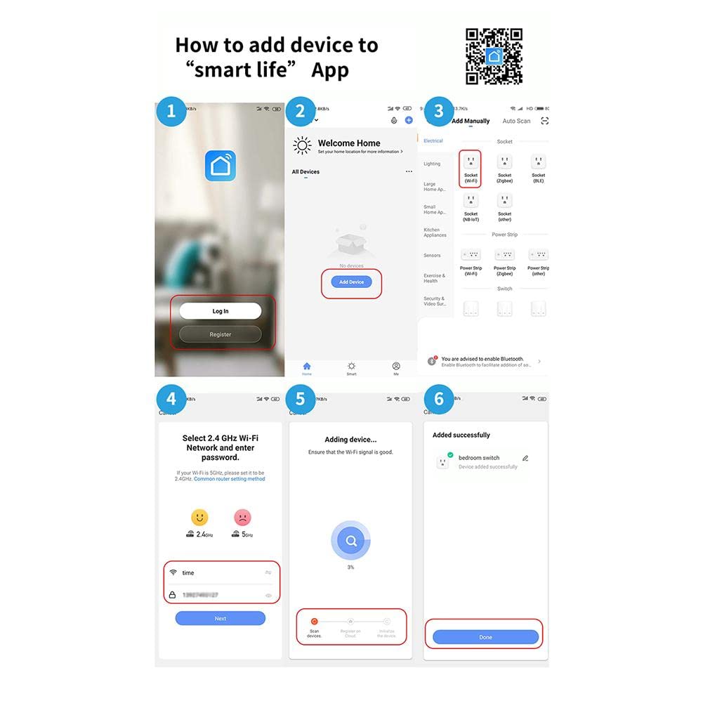 The UanTii Tuya Wifi Smart Plug is designed for convenience and efficiency in your smart home setup. With a maximum current of 20A and an input voltage range of 100-240V, this mini WiFi outlet allows you to control your devices remotely through the Smart Life app. Setting it up is straightforward: simply connect to a 2.4GHz WiFi network, download the Smart Life or Tuya Smart app, and follow the easy instructions to add the device.