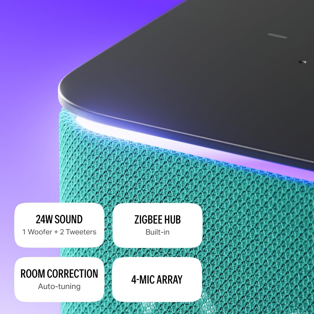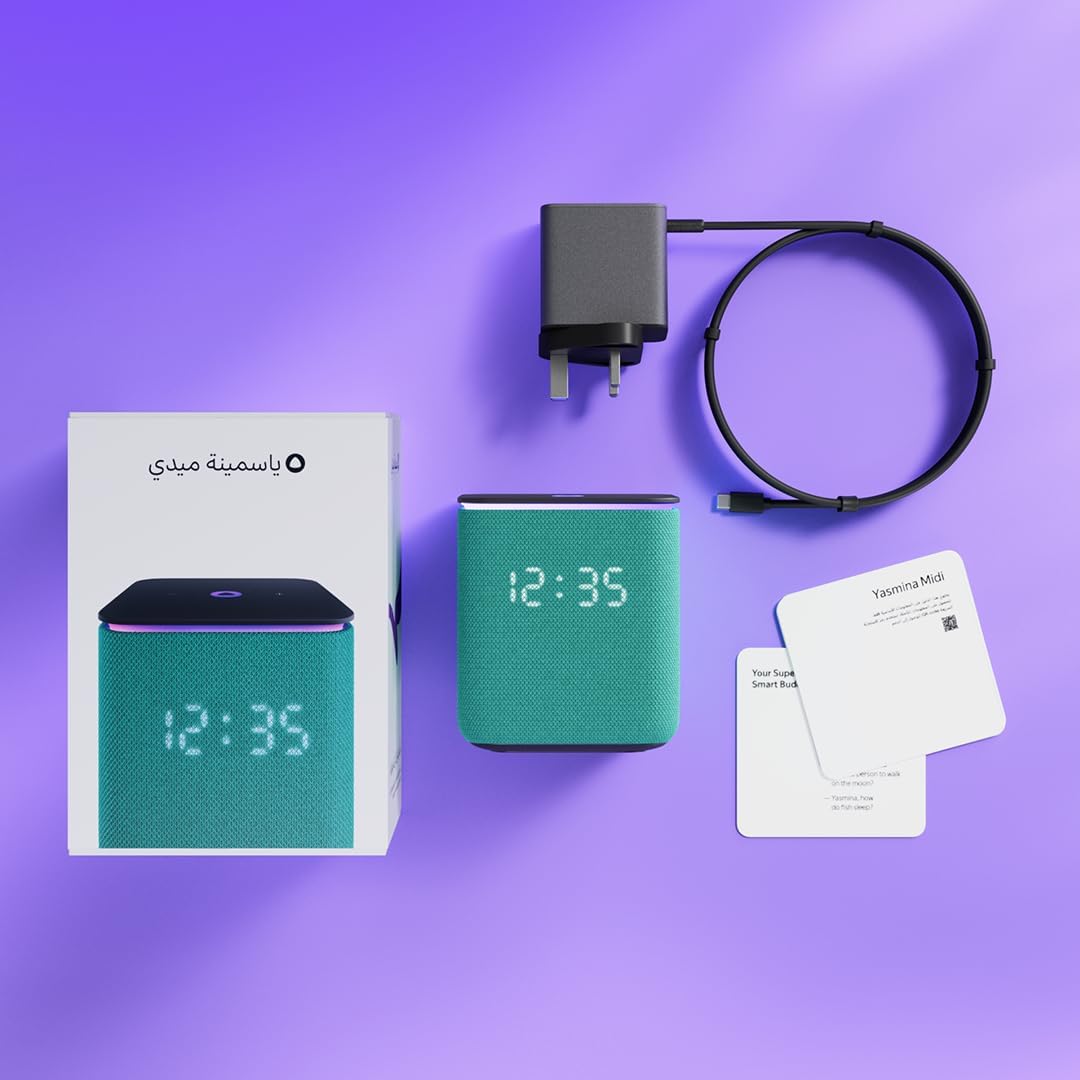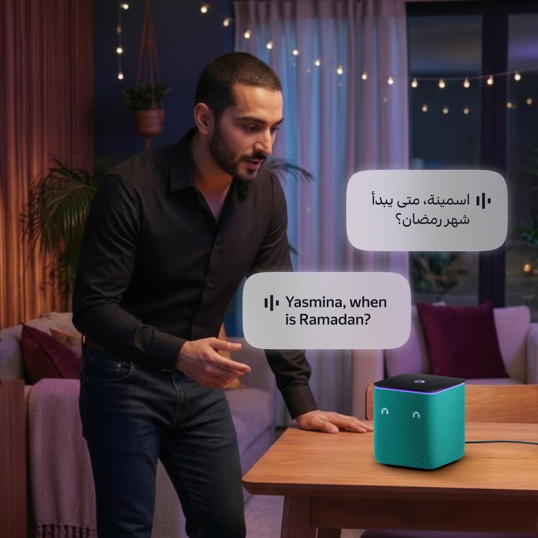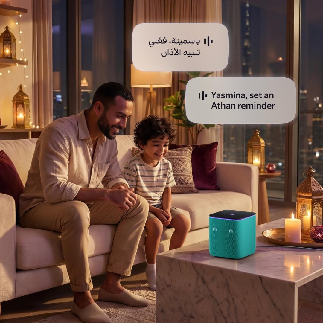 Yango Yasmina Midi Smart Speaker 24W with Room Correction & Zigbee Hub – Ambient Light Ring, Azan Prayer Times & Khaleeji Arabic & English, Quran Stories, Emerald